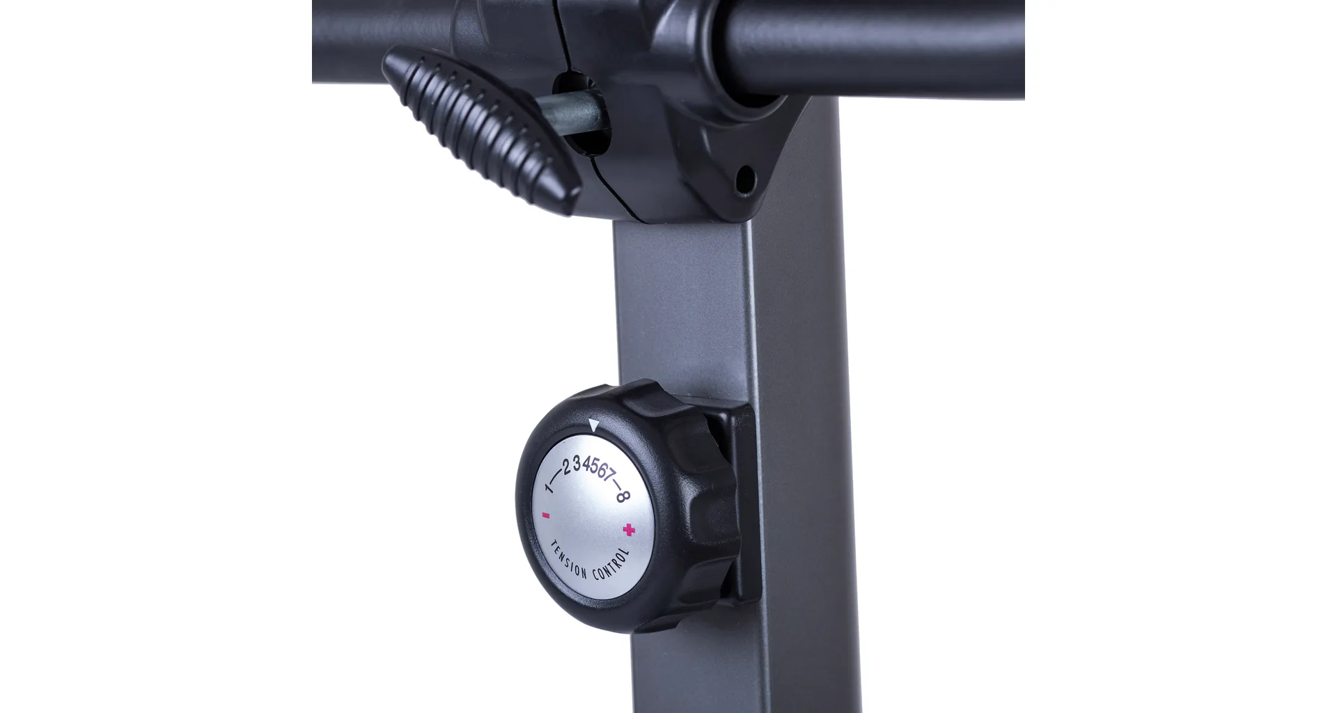 Trenažer disponuje 9 kg těžkým vyváženým setrvačníkem, moderní magnetickou brzdou, ovládanou manuálním otočným regulátorem v rozsahu 1-8 a převodem dopínaným řemenem což zaručuje komfortní, plynulý a zcela tichý chod i při větších zátěžích.