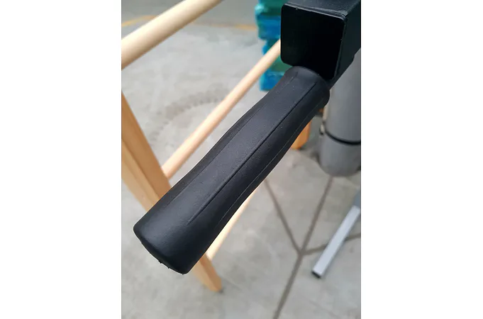 Samotná kovová konstrukce s masivními profily má nosnost 150 kg. Úchopové části mají protiskluzový povrch.
