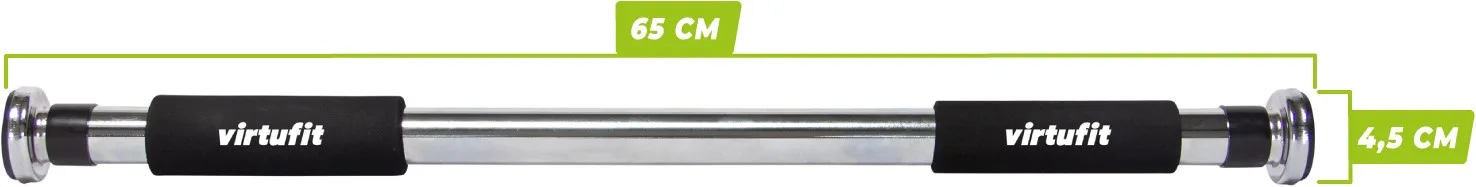 Hrazda do dveří VIRTUFIT Pull Up Bar je robustní ocelová tyč s chromovanou úpravou, která brání korozi. Hrazda je dodávána s 6 šrouby pro ještě pevnější upevnění. Pěnové rukojeti poskytují během cvičení extra komfort. Montáž hrazdy do dveřního rámu nebo mezi dvě stěny trvá jen několik minut, takže můžete začít se silovým tréninkem v co nejkratším čase.