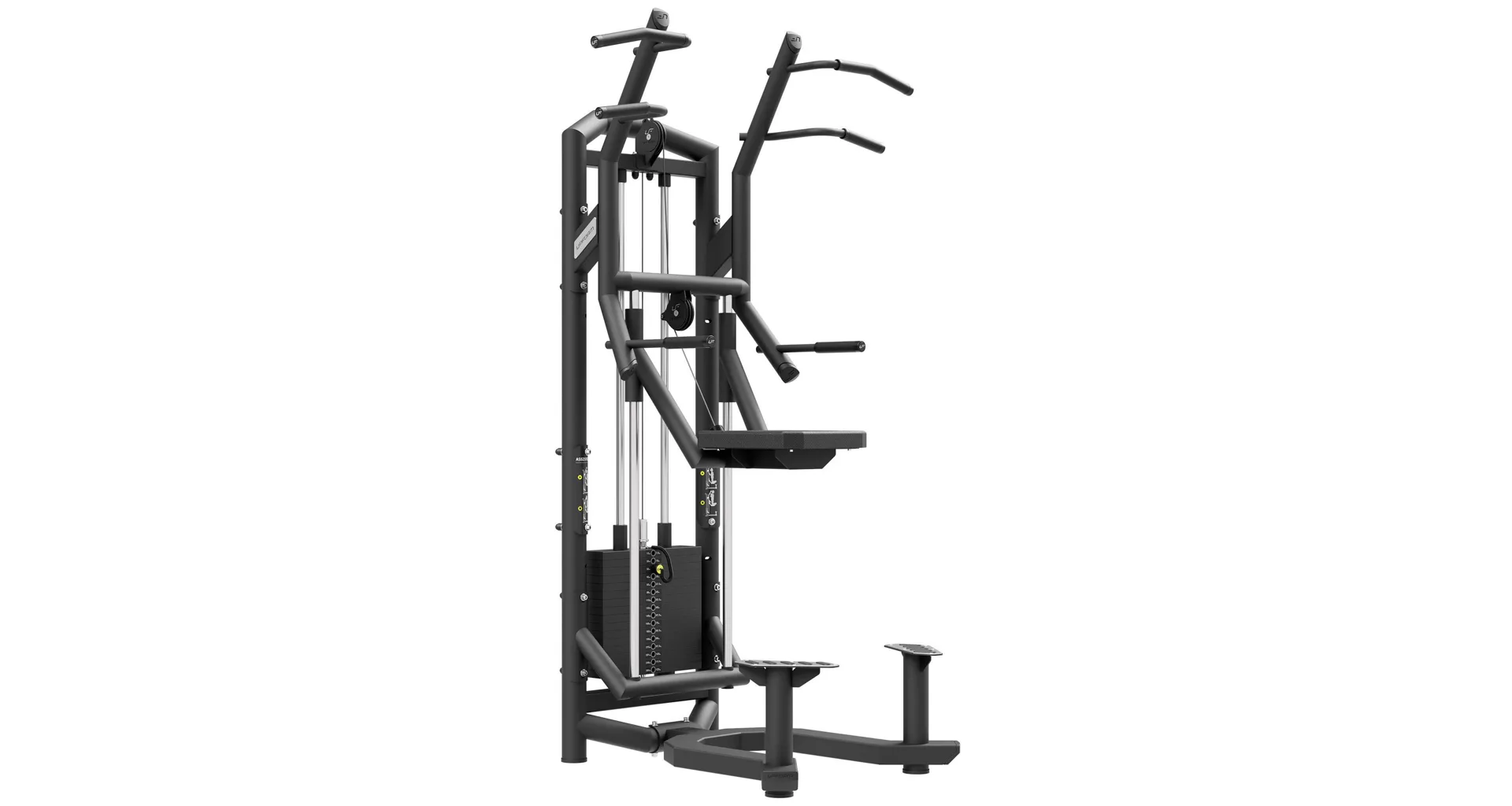 Modularní systém UpForm je ideálním řešením pro všechny komerční prostory ať jde o posilovny, fitnesscentra nebo kluby. Jednotlivá stanoviště se spojují pomocí spojovacích dílů UF-016 a horních spojek UF-014 a UF-015 podle počtu modulů spojených k sobě. Při použití nohy UF-017 mohou jednotlivé moduly stát i samostatně. Modulární systém UpForm umožňuje sestavení jednotlivých stanovišt do libovolného Multitoweru přesně podle Vašich představ a potřeb. Hrazda s dopomocí UpForm UF-009 je vybavena sadou závaží čítající 16 cihel o celkové hmotnosti 120 kilogramů odstupňovaných po 7,5 kg. Volič váhy je opatřen nálepkami pro rychlou volbu požadované zátěže a jistící čep je připevněn na lanku, takže nehrozí jeho ztráta. Dopomoc je u stanice UF-009 řešena sedákem, který je spojen se závažím a pohybuje se po 2 nerezových, vodících tyčích. Na sedák bylo použito perforované čalounění, které zajišťuje dostatečnou ventilaci a odvod vlhkosti. Pro snadné nasedání je stanoviště doplněno o dva robustní, nerezové nášlapy s gumovými ploškami proti uklouznutí. Veškeré kladky jsou schovány pod kovovými kryty s logem UpForm. Ocelové lanko je pokryto černým PVC, je zakončeno masivním okem a je odpruženo gumovým tlumičem.