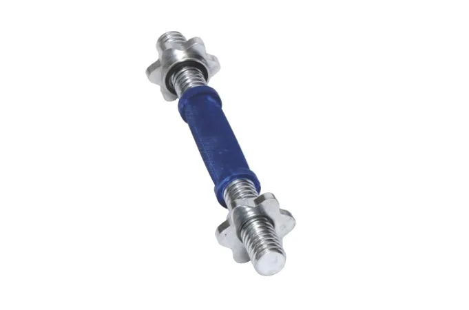 Hřídel jednoruční na závit LUX je vybavena plastovým ergonomických úchopem v mírném rádiusu. Úchop je opatřen rádlováním proti prokluzu. Jednoruční hřídel na činku o délce 350 mm s maticovými uzávěry pro bezpečné zajištění závaží. Součástí osy jsou dva kusy matice ve tvaru hvězdy s těsnící gumičkou zaručující přesnější dotažení. Hřídel je vyrobena z pevné kvalitní oceli, která byla podrobena temperování. Průměr osy je 30 mm. Pro zajištění pohodlného a bezpečného uchopení, je rukojeť hřídele vroubkována.