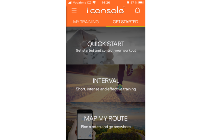 Aplikace iConsole+ patří mezi nejznámější tréninkové aplikace, které jsou k dostání bez jakéhokoli poplatku. Aplikaci lze stáhnout na chytrá zařízení s operačním systémem iOS i Android, na kterých spárujete aplikaci přímo s Vaším kardio trenažérem.