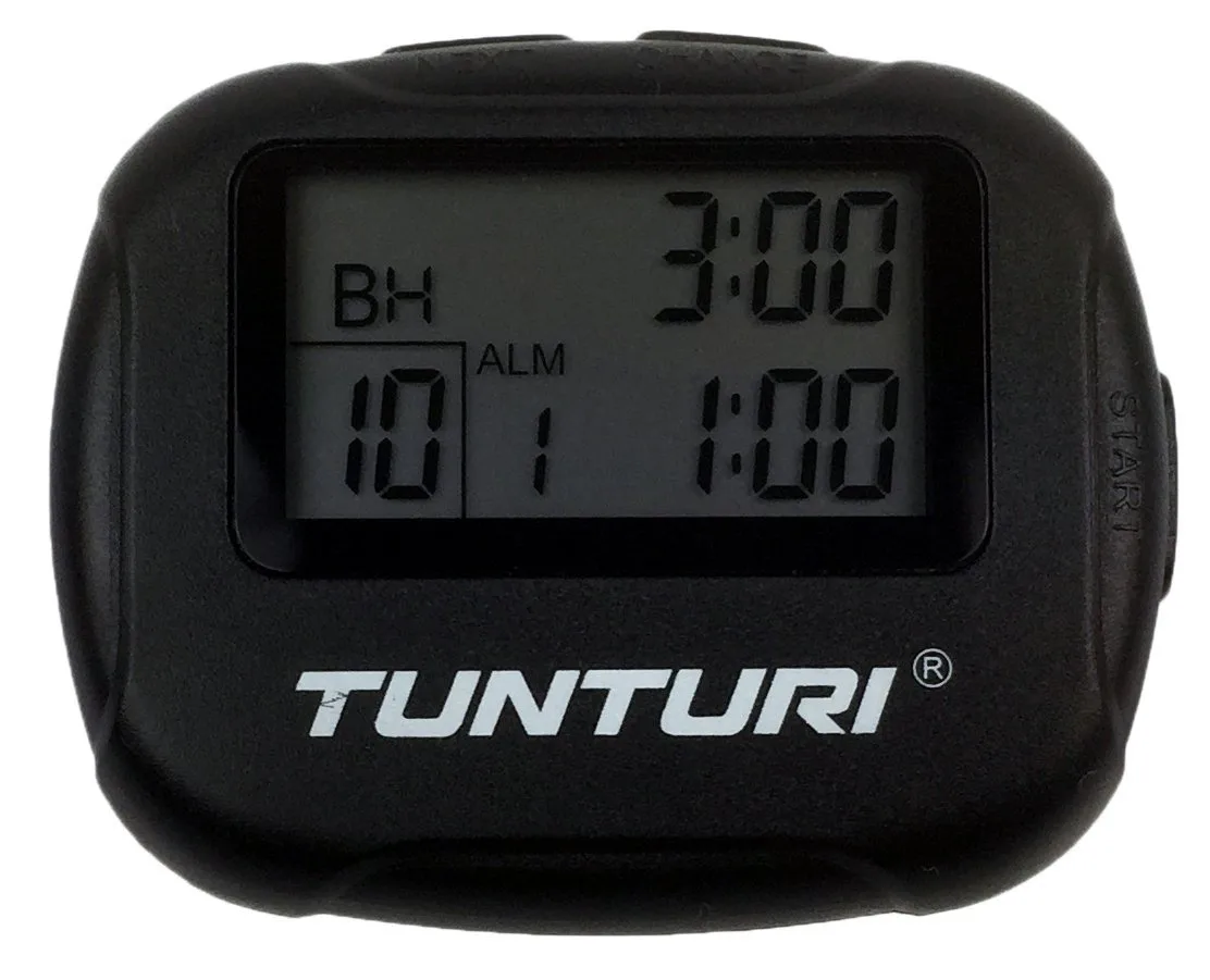 TUNTURI Intervalový časovač a stopky je vhodným doplňkem pro intervalový trénink, box, MMA, Tabatu a crossfit. Obsahuje funkce intervalového časovače a režim stopek. Dodává se s odnímatelnou sponou na opasek, popruh na rameno a je vybaven magnetickou podložku k připojení časové skříňky.
