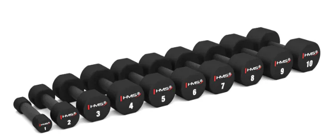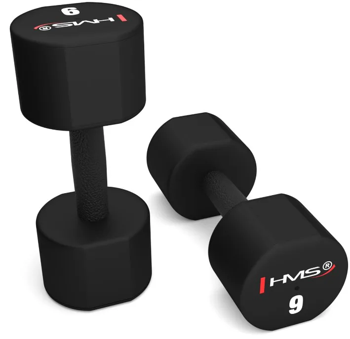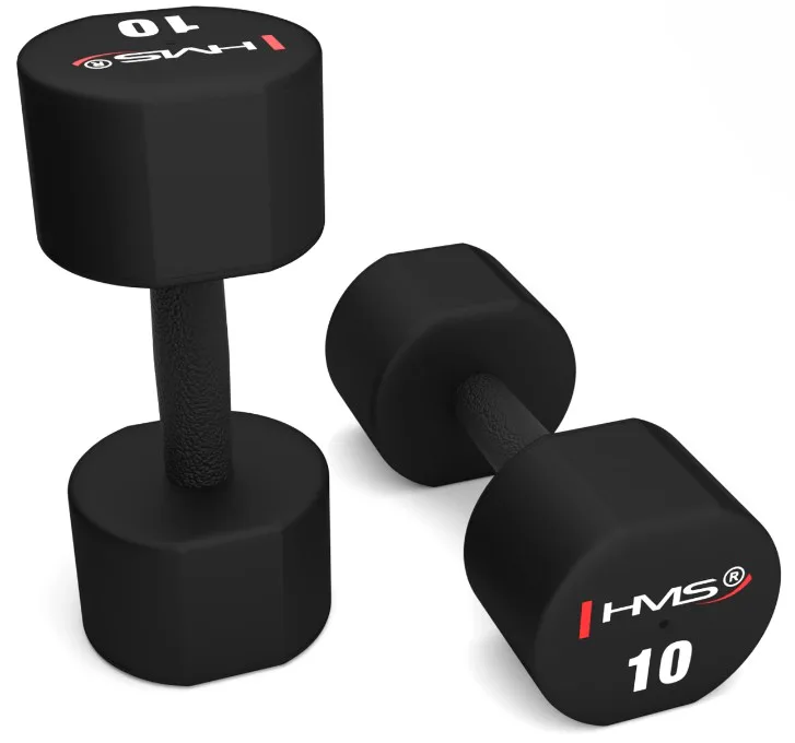 Tréninkové jednoruční činky HMS jsou tvořeny kombinací ocelového jádra s odolným termoplastickým polyuretanem (TPU), což jim zajišťuje dlouhou životnost a komfort při používání. TPU vrstva chrání činky před poškozením, snižuje riziko poškrábání podlahy a minimalizuje hluk při cvičení. Díky ergonomickému úchopu s rýhovaným povrchem poskytují činky bezpečné a pevné držení, což zvyšuje komfort i kontrolu během intenzivních tréninků.