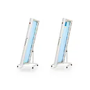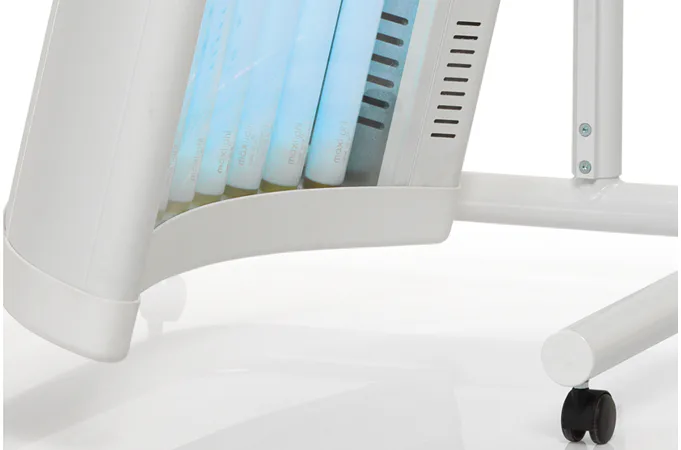 Po skončení vašeho slunění zvládnete solárium snadno a velmi rychle složit a díky svým skladným rozměrům, ho můžete uložit podél zdi, kde nebude nikomu překážet. Manipulace s ním je opravdu jednoduchá, a to díky zabudovaným transportním kolečkům.
