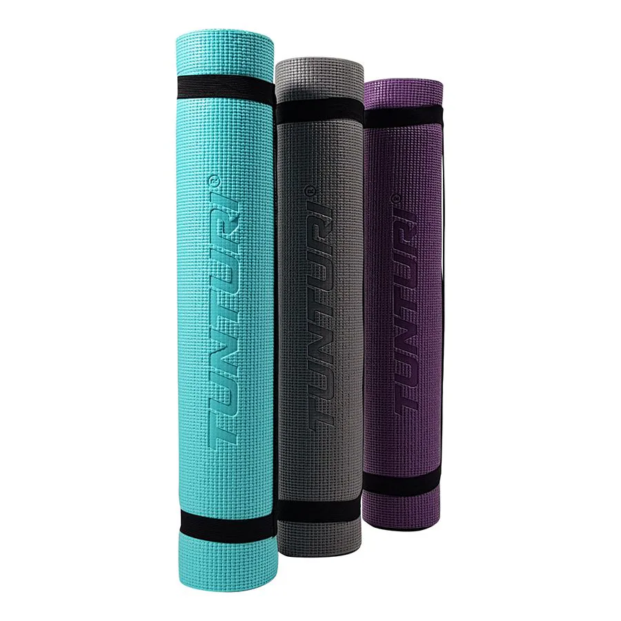 Kvalitní jóga podložka PVC 4 mm TUNTURI s popruhem je určena pro pilates, jogu a různá další cvičení vhodná pro každodenní použití (tzv. lepivka), oboustranný povrch s jemně strukturovaně přilnavým a nesmekavým povrchem. Vyrobeno 100% ekologicky a v souladu s direktivou RoHS (nařízení striktně limitující použití zdraví ohrožujících látek při výrobě) , bez použití těžkých kovů nebo jakýchkoliv toxických látek.