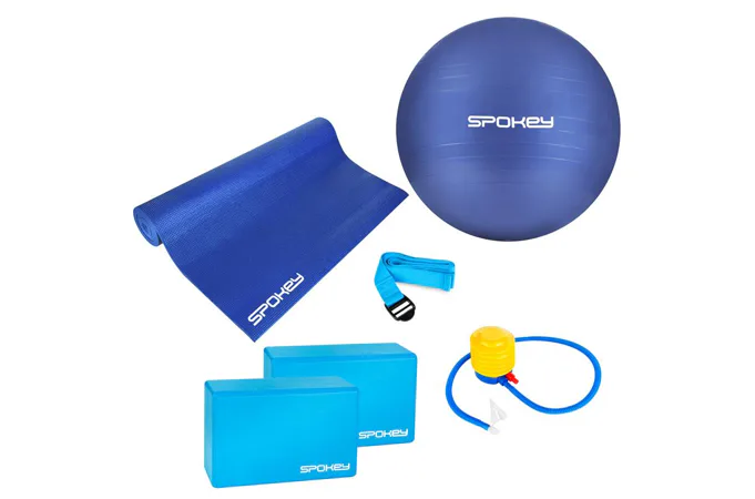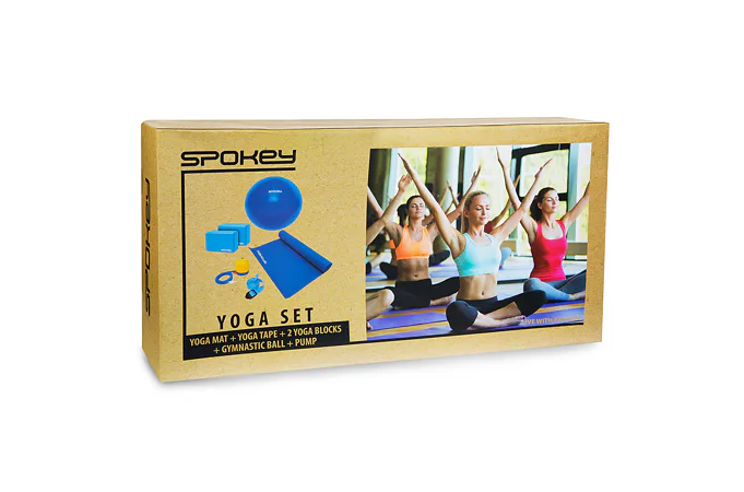 Jóga podložka:materiál: PVC pěnarozměr: 173 x 61 cmtloušťka: 4 mmJóga blok, 2 ks:materiál: pěna EVArozměry: 22,5 x 15 x 7,5 cmFitness míč:průměr: 65 cmpumpička pro nafouknutíJóga pás:rozměry: 183 x 3,8 cm