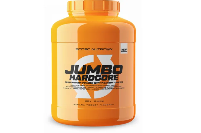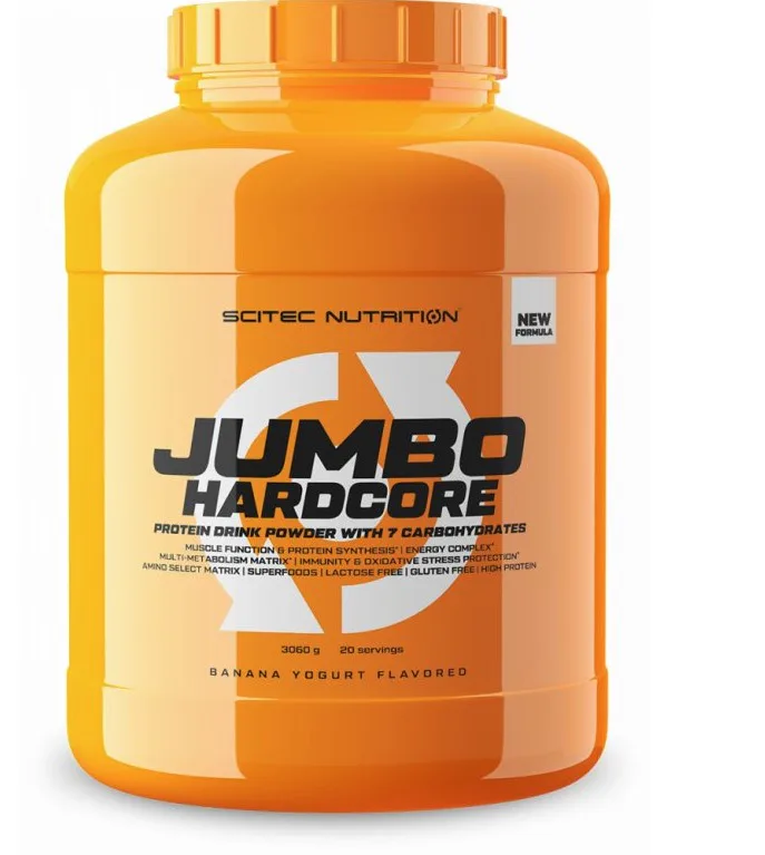 JUMBO Hardcore bol vyvinutý na to, aby prekročil objemové produkty s obsahom jednoduchej dextrózy a maltodextrínu, aby zabezpečil veľké množstvo kalórií a značné množstvo extra účinných látok. Naša „7-CARB“ zmes sa stala ešte komplexnejšou: obsahuje ovsenú múku, patentovaný ModCarb®, cyklický dextrín s viacnásobne rozvetveným reťazcom, Palatinose® s postupným zabezpečovaním energie, ako aj WaxyMaize. Jumbo Hardcore neobsahuje veľa cukru!