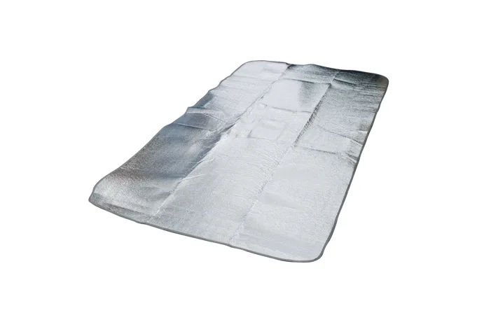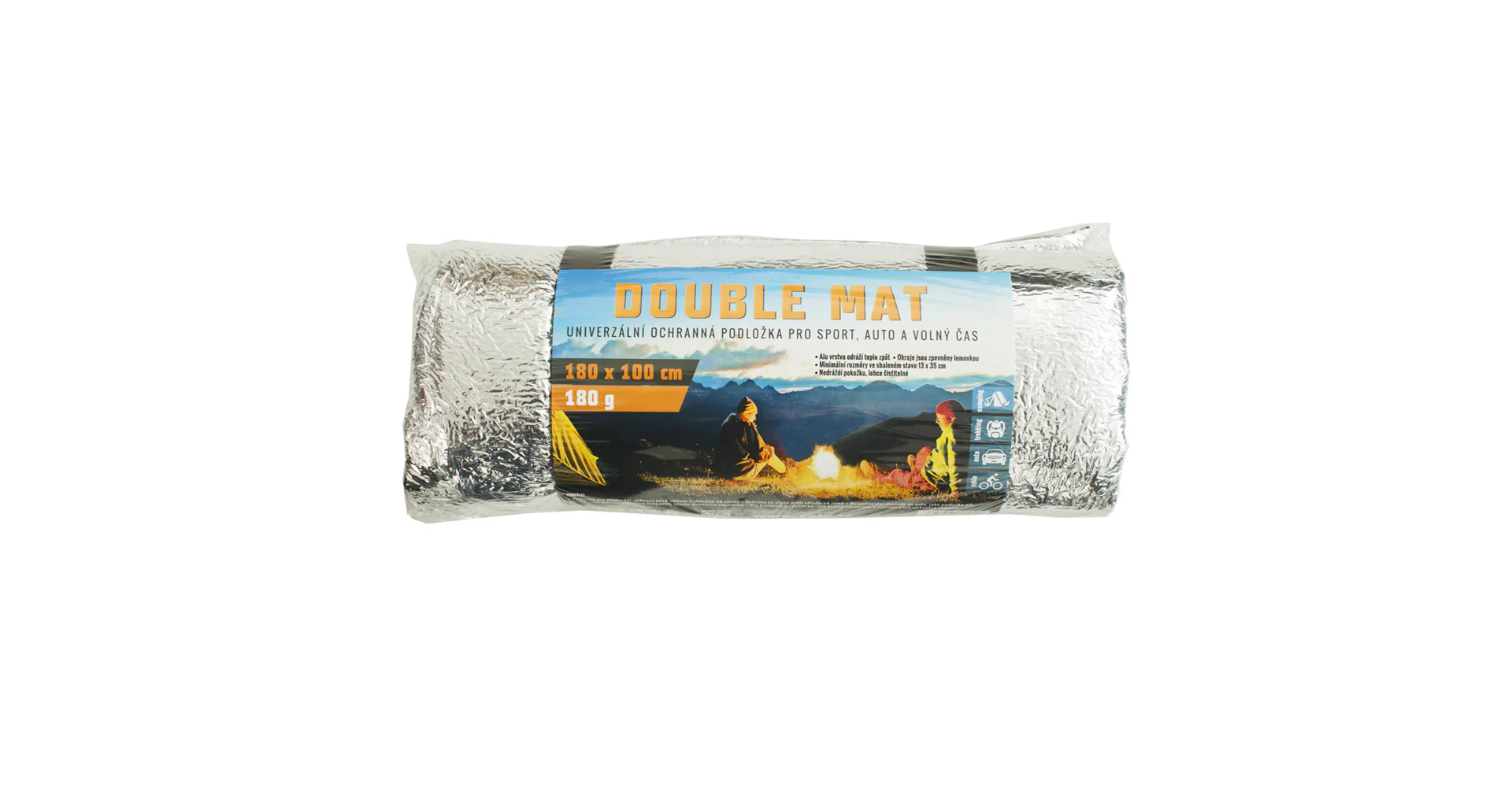 Karimatka YATE DOUBLE MATTE ALU 180/100 je podložka opatřená reflexní ALU (hliníkovou) fólií, která odráží zpět vyzařované teplo (pokládat fólií nahoru). Jsou skladné a velmi lehké. Ideální pro letní turistiku a cykloturistiku. Chrání před chladem, vlhkem a špínou. Karimatka má našité popruhy, takže ji lze sbalit do malého balíčku a nést jako tašku. Popruhy nejsou vhodné pro zavěšení karimatky na batoh, mohou se vytrhnout.