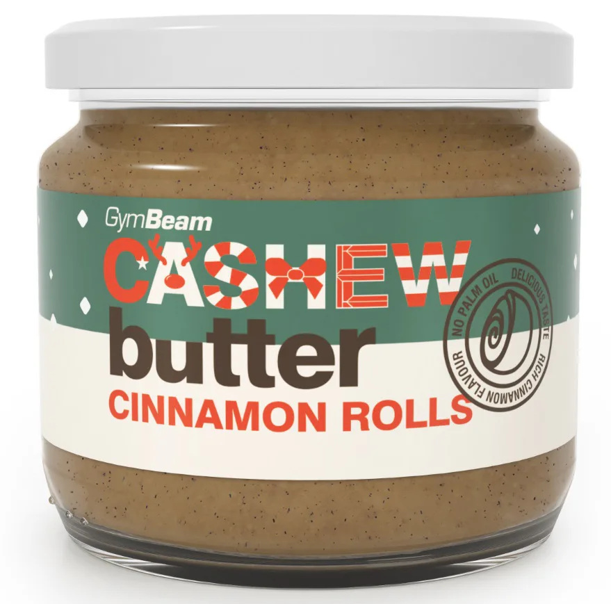 GymBeam Kešu krém - Cinnamon rolls je vánoční limitka v podobě ořechového másla, kterou si zamiluje každý mlsoun. Pod jejím víčkem na vás čeká dokonale jemný a lahodný kešu krém, který voní po skořici a dokonale souzní s bílou čokoládou. Tohle sladké spojení připomíná tak oblíbené skořicové rolky, které jsou synonymem domácí pohody. Naladí vás tak na sváteční notu a zároveň pomůže doplnit energii.