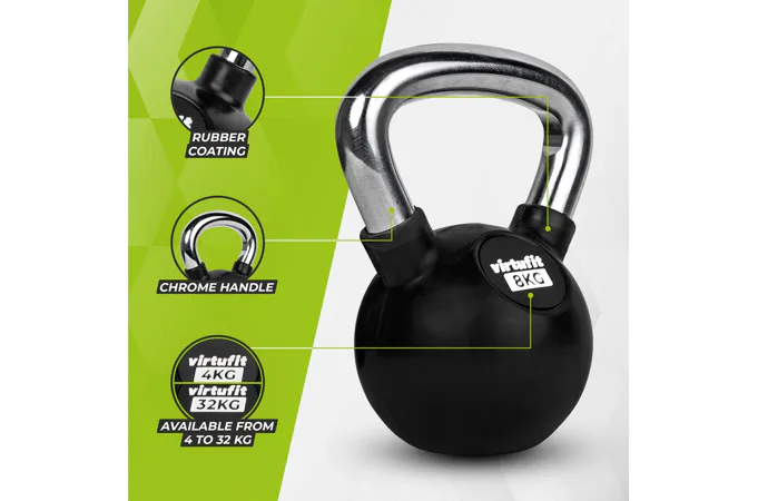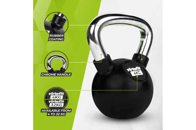 VirtuFit Pro je kettlebell vyroben z odolné gumy a litiny a má ergonomickou rukojeť, která během tréninku poskytuje maximální pohodlí. Ploché dno kettlebellu nabízí ještě více tréninkových možností a poskytuje stabilitu na zemi během cvičení, jako je klasický mrtvý výtah. Použitím kettlebellu můžete využívat výhody silového tréninku s kardio tréninkem, což vám pomůže budovat svalovou hmotu a zhubnout.