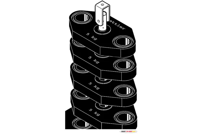Přídavné závaží je vhodné pouze pro posilovací věže řady KETTLER KINETIC. Při instalaci se celková váha závaží zvýší z 80kg na 100kg. Set závaží obsahuje 2 zátěže (kovové závaží), každou o hmotnosti 10kg a prodložený trn pro zdvih kovových desek. Instalace by měla probíhat současně s montáží věže. Při dodatečné instalaci je nutné z velké části rozebrat celé zařízení, aby bylo možno vyměnit zdvihací trn a na pojezdové tyče doplnit závaží.