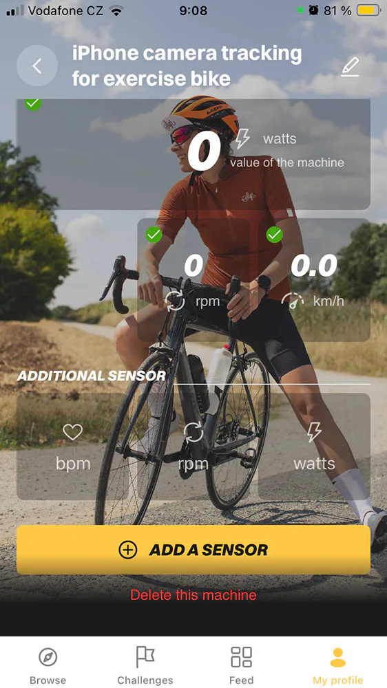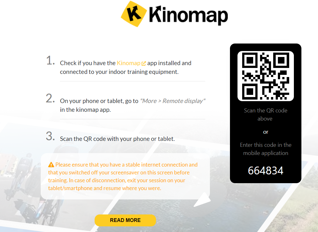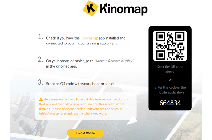 Kinomap nabízí 2 možnosti využití a to přímé propojení trenažéru a aplikace pomocí Bluetooth komunikace nebo bez párování pomocí snímaní cvičence přes optický senzor kamery na Vašem chytrém zařízení.