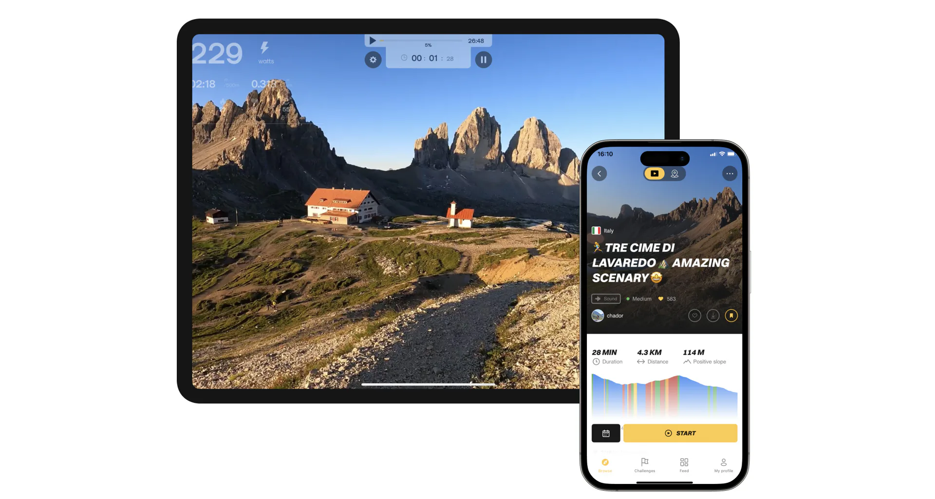 U obou využití Vám aplikace nabídne plynulé video Vámi vybrané trasy, ale jen pomocí Bluetooth spojení Vám bude trenažér sám přidávat zátěž, sklon, dle toho, kde se právě na trati nacházíte.
