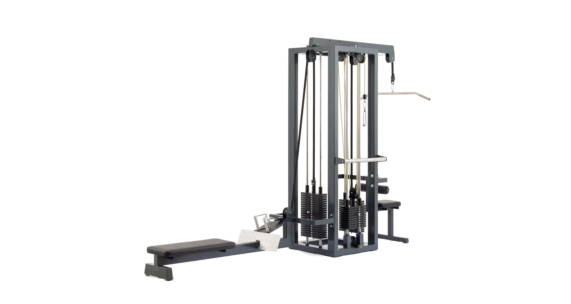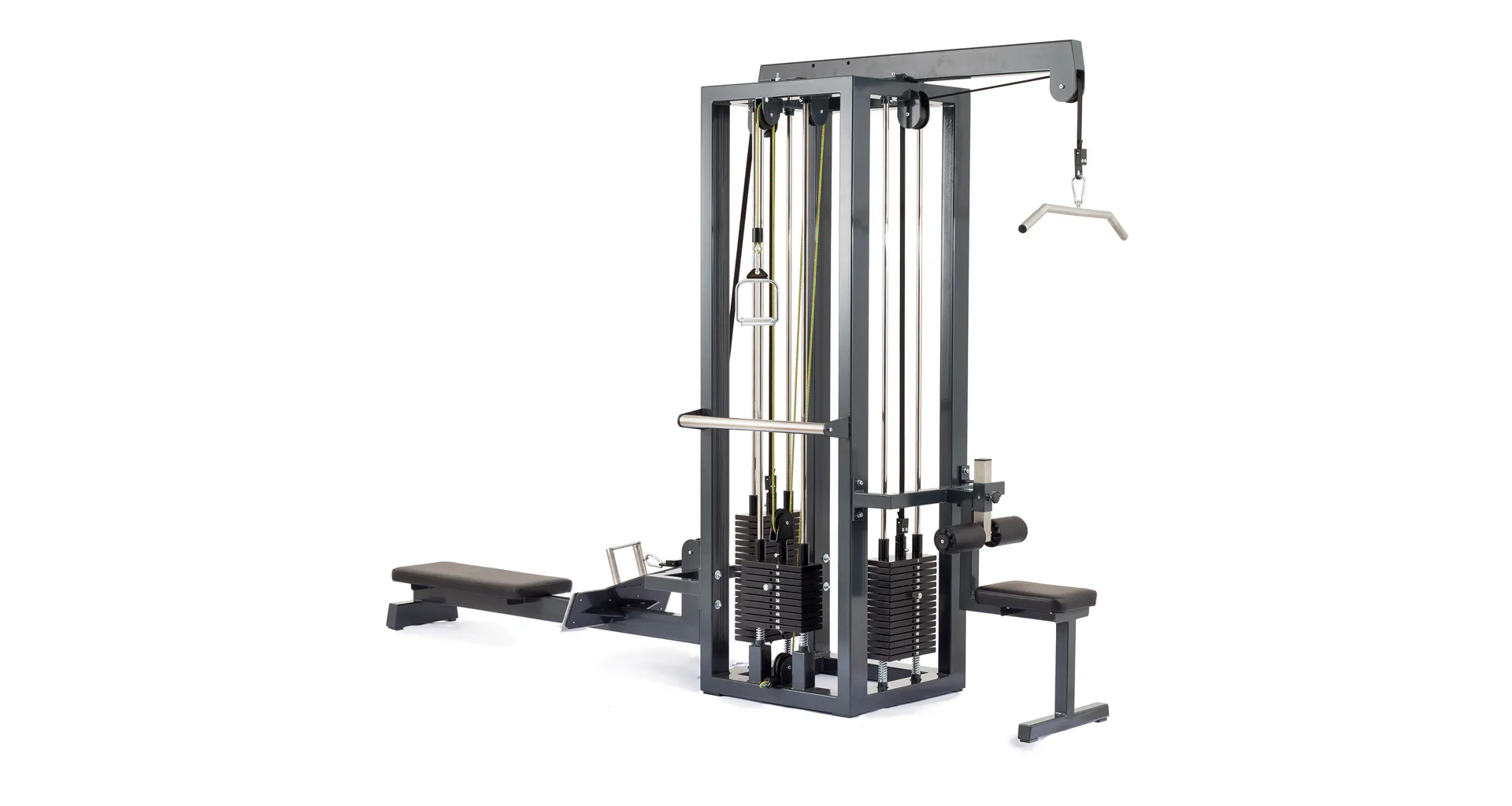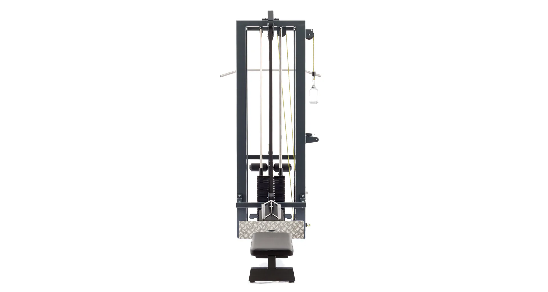 Konstrukce je vybavena masivním hranatým rámem, pojezdy s vodícími tyčemi z nerezu a kladkami v kuličkových ložiscích. FITHAM Profesionální kladková věž má spolehlivou funkčnost, pohodlnou obsluhu, nenáročnou údržbu a pěkný design. Profesionální posilovací věž vhodná jak do hotelových, tak profesionálních posiloven.