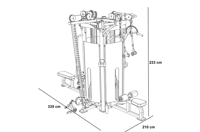 Díky samostatným pozicím mohou tento multifunkční stroj obsluhovat 4 cvičenci současně a každý si může navolil libovolnou hmotnost nezávisle na sobě.Hlavní předností této konstrukce je universálnost využití a kvalitní, masivní provedení konstrukce z profilů s tloušťkou materiálu 4 mm a práškovou povrchovou úpravou. Stroj nabízí profesionální, otočné kladky na ložiscích na 4 stanovištích.