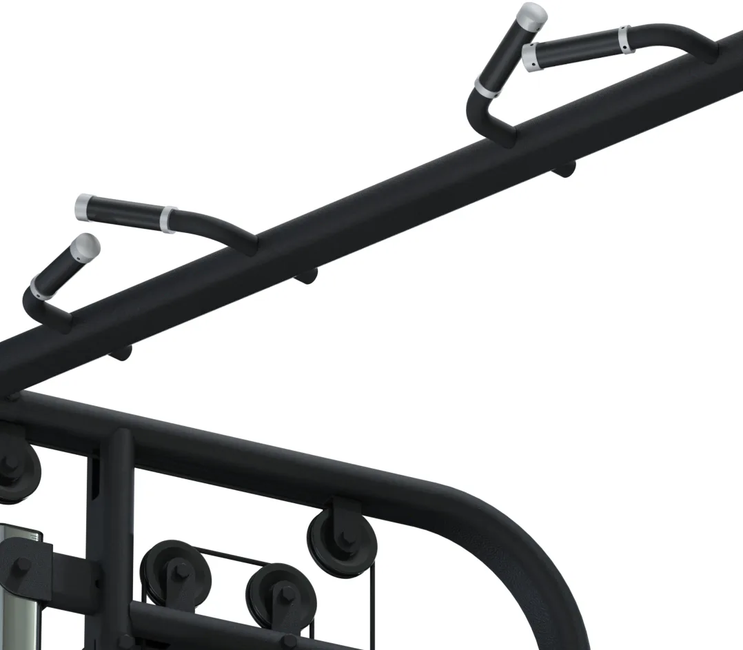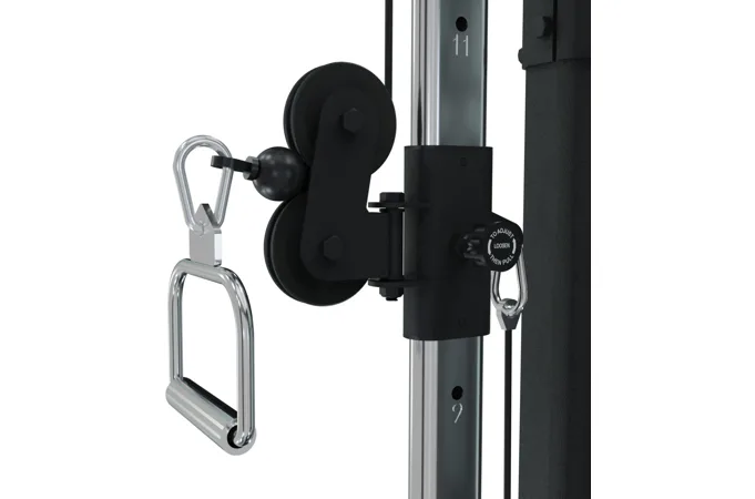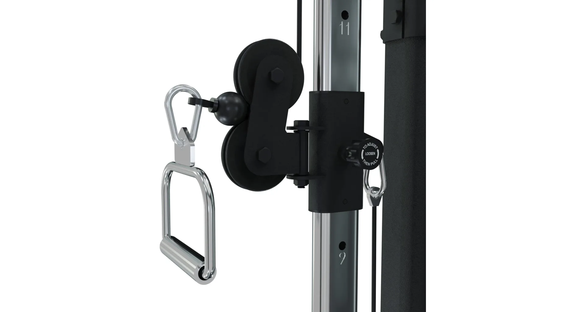 Samotné kladky jsou snadno polohovatelné až do 11 nastavitelných výšek díky čemuž lze odcvičit více partií na jednom místě. Otočný systém zaručuje správnou ergonomii vašeho pohybu při cvičení. Hrazda, která je součástí konstrukce, má několik variant úchopu, díky čemuž dokážete zaměřit svůj trénink správným směrem!