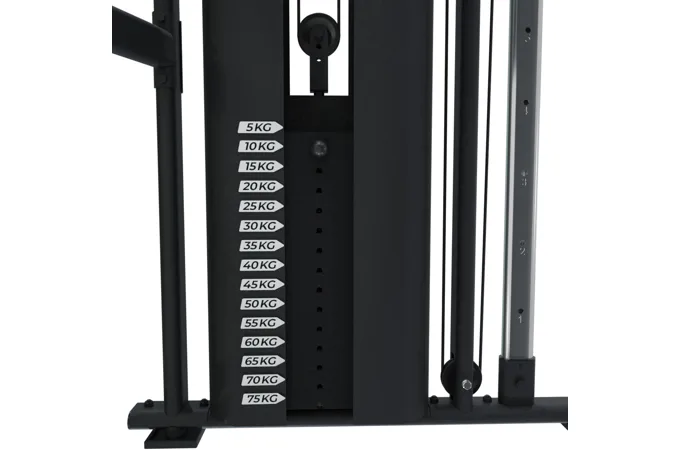 Celá konstrukce je doplněna o držák adaptérů ke kladkám, tudíž minimalizujete nepořádek ve své posilovně. Pro maximální bezpečnost jsou kladky vybaveny centrálně krytým závažím o váze 75 kg na každé straně. Jednotlivé cihličky závaží jsou rozděleny od 5 kg až do 75 kg (15 x 5 kg). Protisměrnou kladku ve vaší posilovně můžete obohatit o posilovací lavici a další adaptéry ke kladkám, které jsou nezbytnou součástí k odtrénování efektivního tréninku!