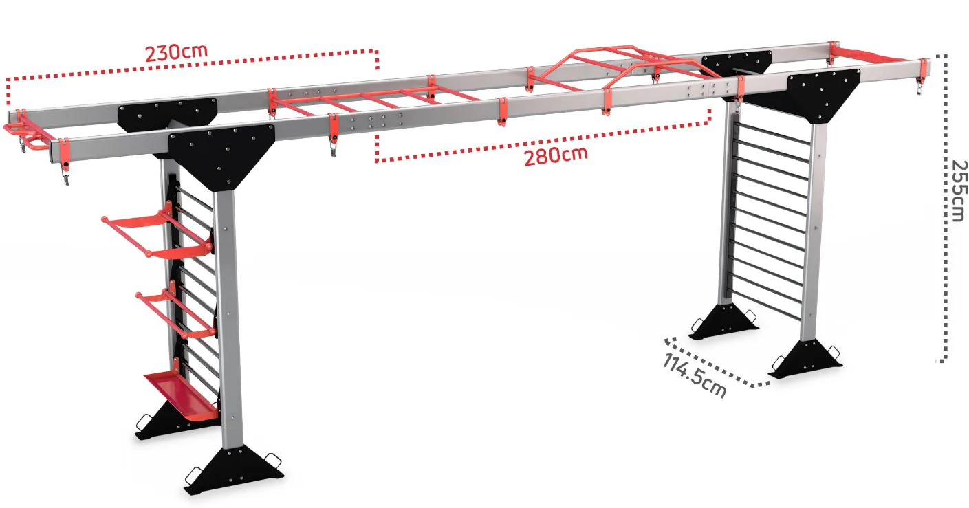 Konstrukce je vyrobena tak, aby na ní mohlo cvičit více osob najednou a je vhodná pro funkční trénink jako je například crossfit apod.. Konstrukce je ideální například pro skupinové tréninky ve formě kruhových tréninků.