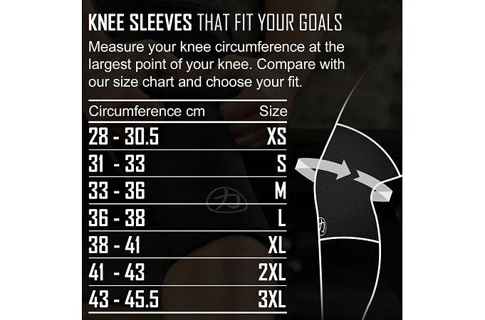 Pro určení správně velikosti změřte obvod kolene v nejširším bodě a podle výsledné hodnoty vyberte správnou velikost z tabulky: