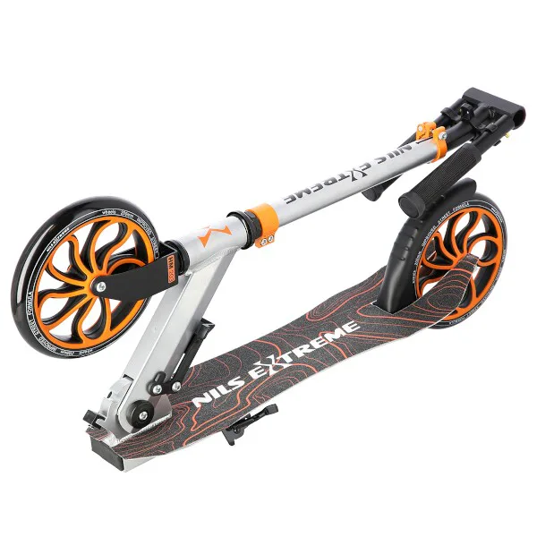 Koloběžka NILS Extreme HM203 je vhodná pro děti i dospělé. Charakteristikou modelu HM203 jsou předsunutá, široká řídítka a výklopný stojánek.