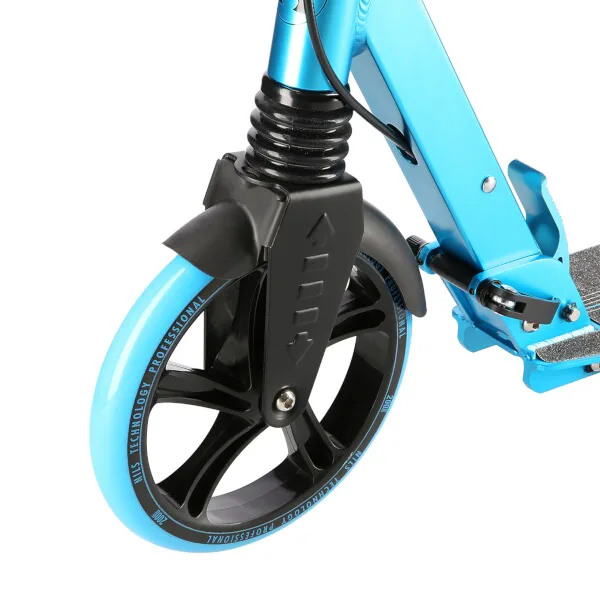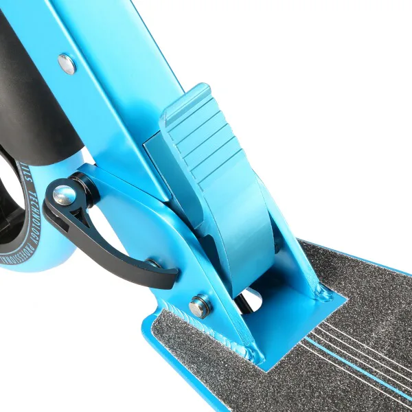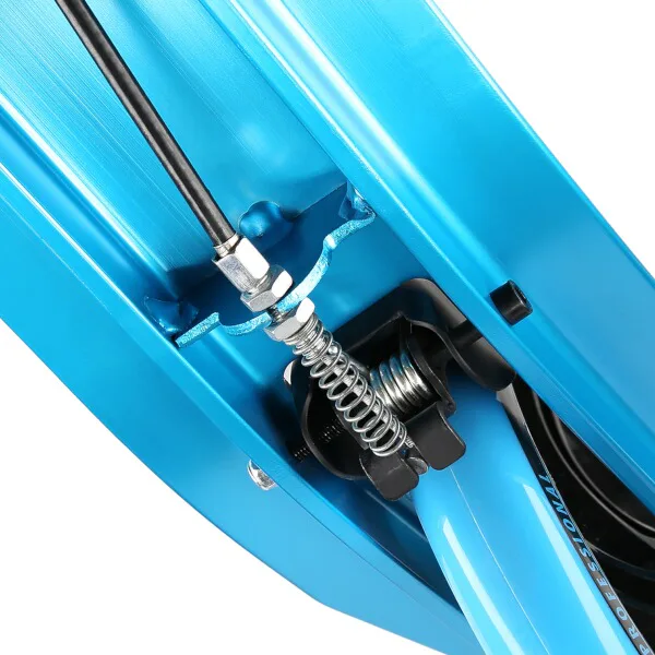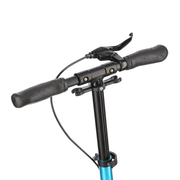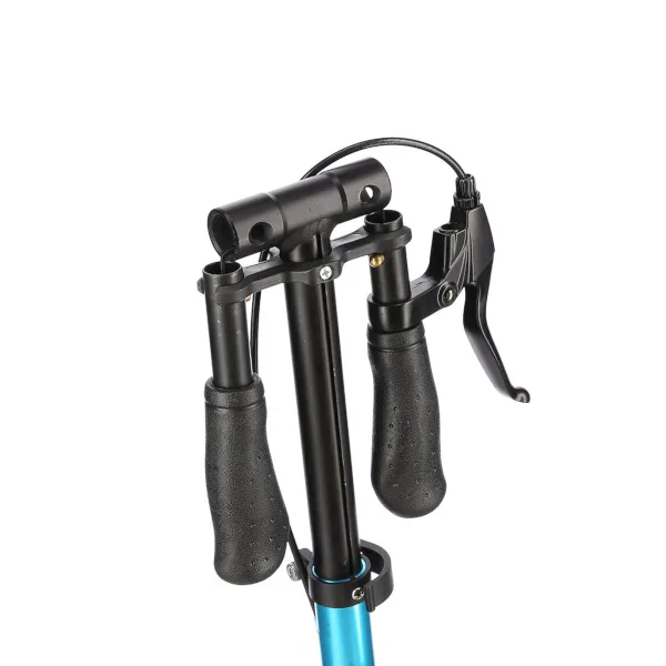 Systém odpružení předního kola zvyšuje jízdní komfort. Tlumič pohlcuje nárazy a jízdu po nerovném asfaltu, nebo dlažebních kostkách je příjemnější a tižší. Zadní blatník slouží jako přítlačná brzda, která ještě podtrhuje brzdný účinek mechanické brzdy ovládané lankem z páček na řídítkách, ty jsou opatřeny gumovými rukojeťmi, které zajišťují pevný a pohodlný úchop.