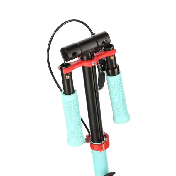 Zadní blatník slouží jako přítlačná brzda, která ještě podtrhuje brzdný účinek mechanické brzdy ovládané lankem z páčky na řídítkách, ty jsou opatřeny gumovými rukojeťmi, které zajišťují pevný a pohodlný úchop. Velká kola jsou osazena ložisky ABEC 7 a polyuretanovou pneumatikou o průměru 200 milimetrů. Tato kombinace zajišťuje rychlou, plynulou a bezpečnou jízdu. Na sloupku řídítek má své místo držák pro odložení láhve s nápojem, který najde své využití při delších vyjížďkách. Blatník na předním kole využijete, pokud Vás zastihne dešťová přeháňka.