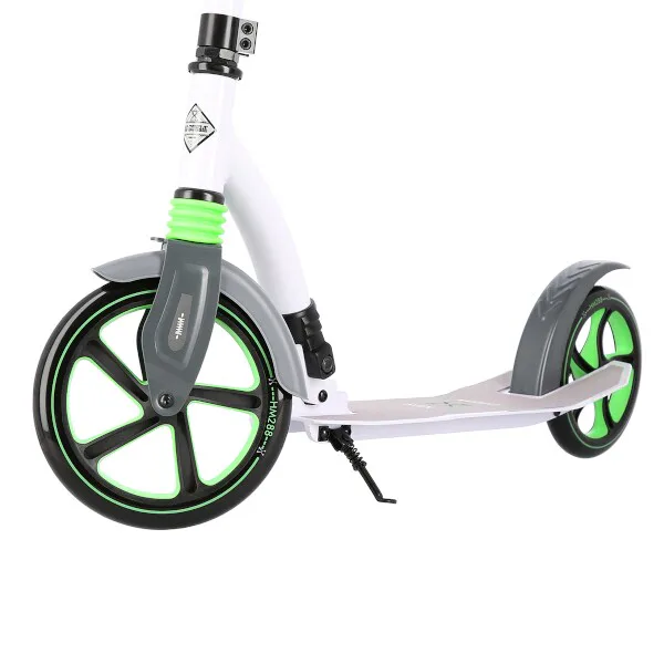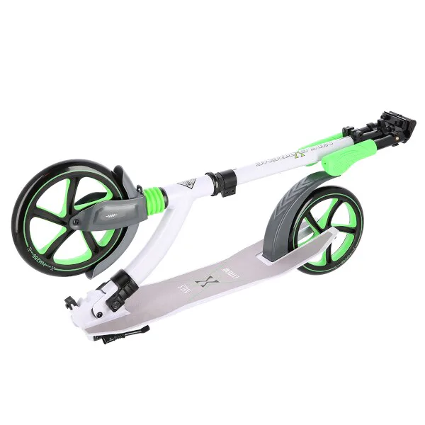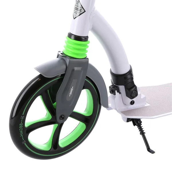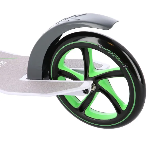 Systém odpružení předního kola zvyšuje jízdní komfort. Tlumič pohlcuje nárazy a jízda po nerovném asfaltu, nebo dlažebních kostkách je příjemnější a tišší. Zadní blatník slouží jako přítlačná brzda. Řídítka jsou opatřeny gumovými rukojeťmi, které zajišťují pevný a pohodlný úchop. Velká kola s průměrem 230 milimetrů ve předu a 200 milimetrů vzadu jsou osazena ložisky ABEC 9 pro plynulou a bezpečnou jízdu. Blatník na předním kole ochrání před stříkající vodou a bahnem.