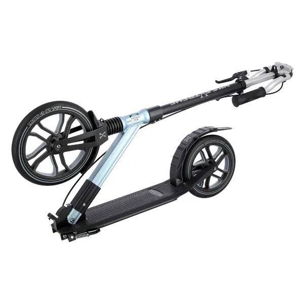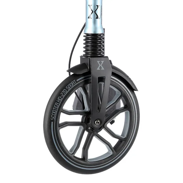 Systém odpružení předního kola zvyšuje jízdní komfort. Tlumič pohlcuje nárazy a jízda po nerovném asfaltu, nebo dlažebních kostkách je příjemnější a tišší. Robustní zadní blatník slouží jako nožní, přítlačná brzda, pod blatníkem se skrývá samostatná, malá brzda, která je ovládána páčkou z řídítek. Široká řídítka jsou opatřena gumovými rukojeťmi, které zajišťují pevný a pohodlný úchop. 270 a 230 milimetrů velká kola jsou osazena ložisky ABEC 7. Tato kombinace zajišťuje rychlou, plynulou a bezpečnou jízdu. Blatník na předním kole a skládací stojánek jsou drobnostmi, které přispívají k maximálnímu možnému komfortu z jízdy a k celkové radosti ze samotného používání modelu MH270.