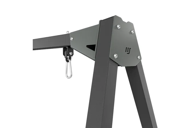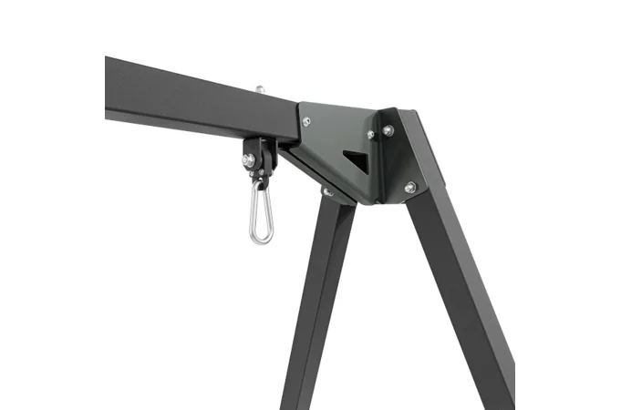 Pevné spoje a široká základna zajišťují stabilitu i při intenzivním používání. Stabilita rámu je navíc zvýšena výztuhou mezi nohami a příčníkem v podobě vhodně zahnutého upevňovacího prvku. Rám je vysoký přes 2 metry, díky čemuž je vhodný pro děti i dospělé. Tupý úhel tvořený příčkou s nohami výrazně zvyšuje stabilitu a bezpečnost celé konstrukce.
