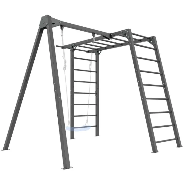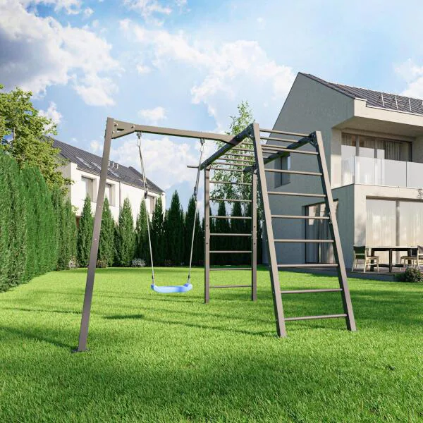 Funkční zahradní sestava od MARBO Sport MO-Z6 skládající se z konstrukce pro 1 houpačku a gymnastických žebřin, které děti využijí i jako prolézačku. Sestava je ideální pro trénink, nebo rodinnou zábavu v soukromí vlastní zahrady.