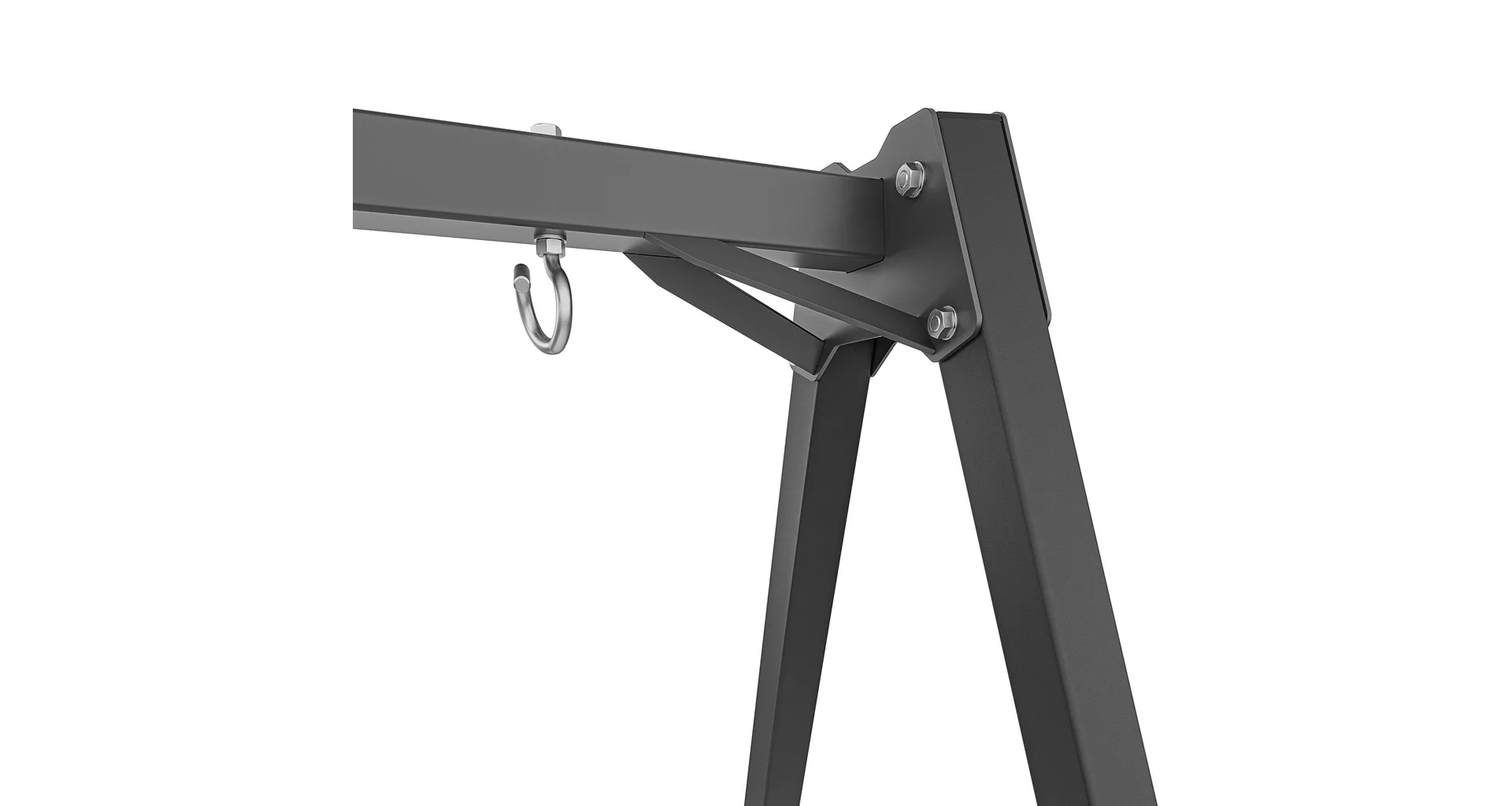 Toto řešení také umožňuje pohodlně používat více příslušenství. Jeden rám můžete snadno použít například na zahradní houpačku, brazilské křeslo, závěsný posilovací systém, lano na šplh a nebo boxovací pytel.