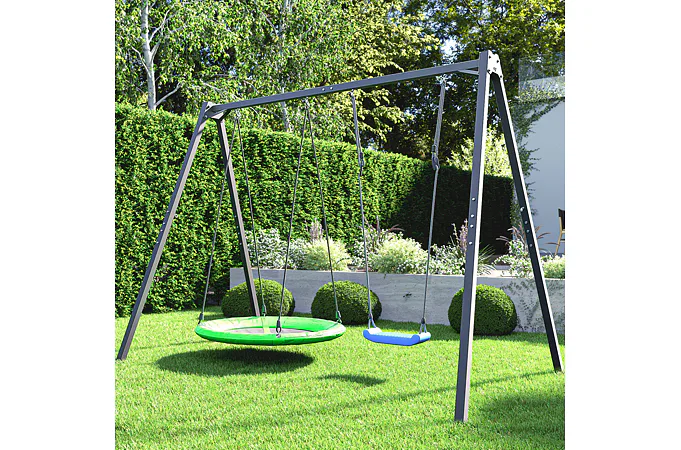 Ať už vaše dítě sní o tradiční houpačce, houpacím kruhu, jako je "čapí hnízdo", houpací síti nebo závěsné lavici - každý z těchto doplňků lze namontovat na ocelový rám MARBO Sport.