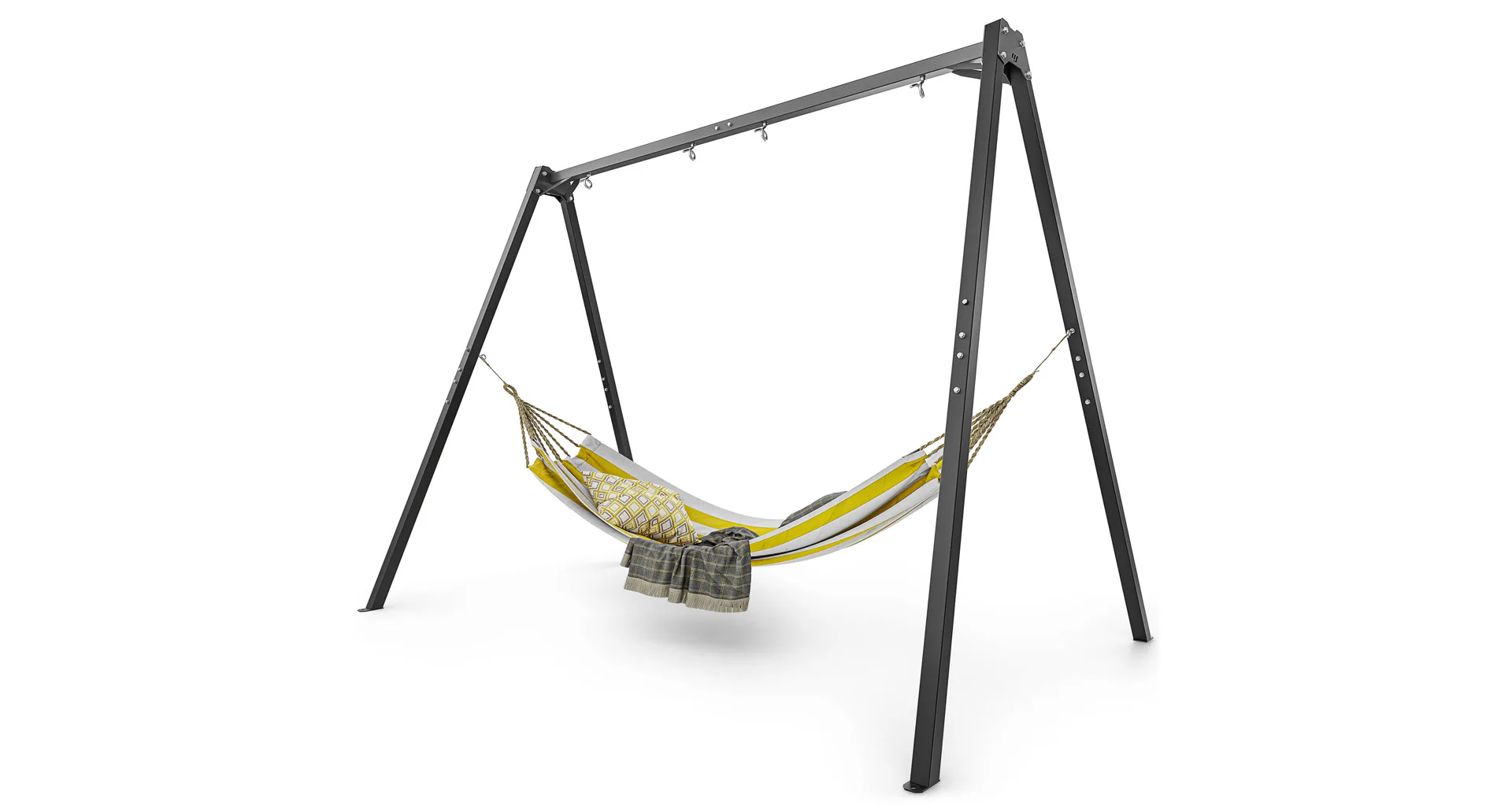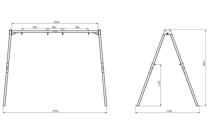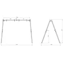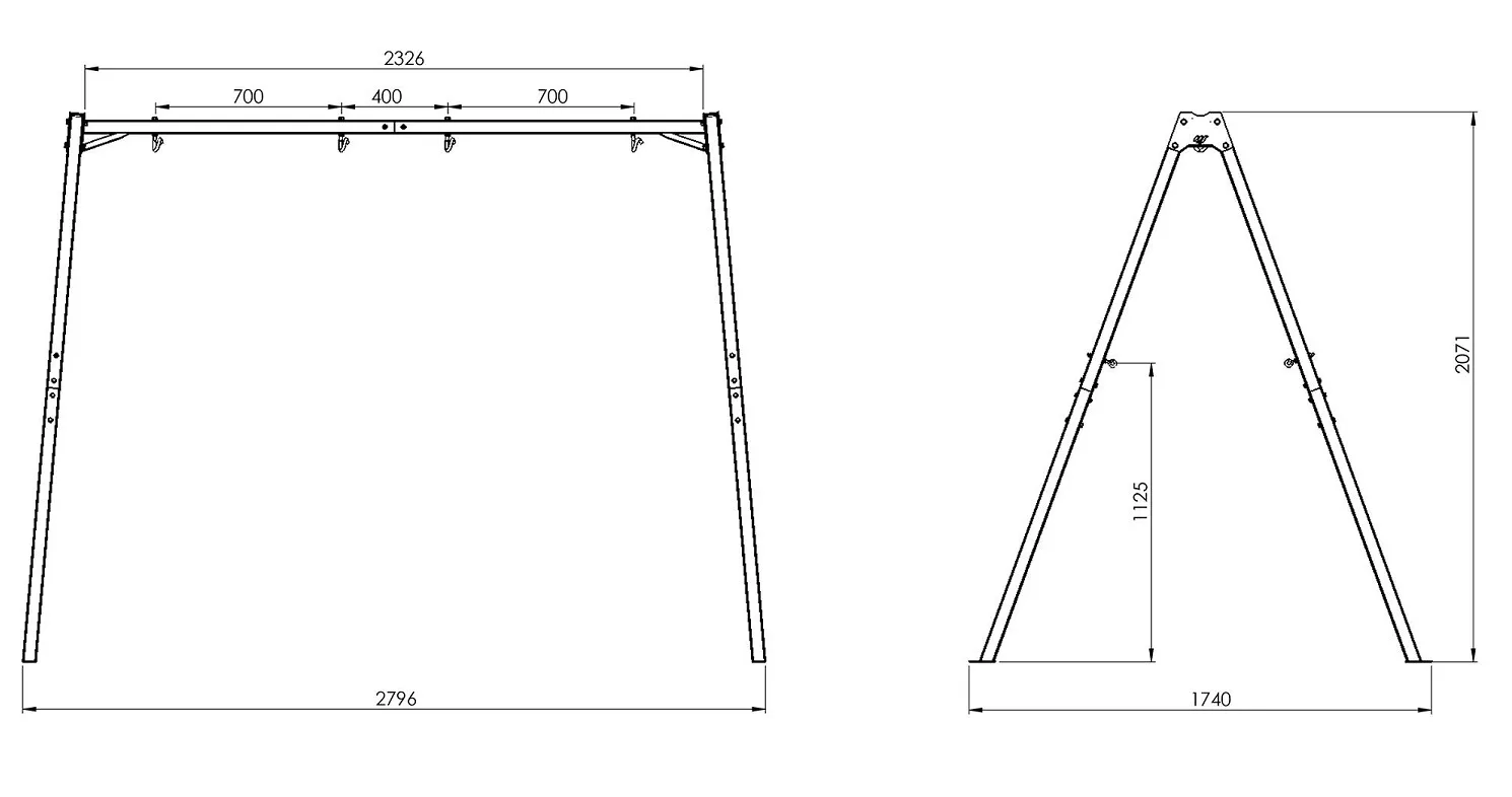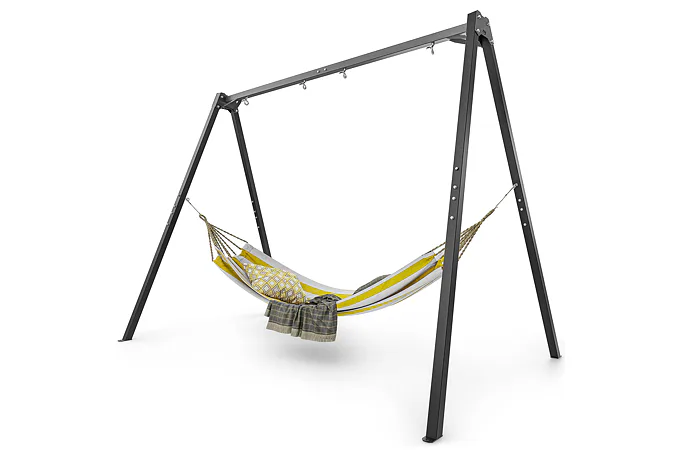 2 úhlopřičné vzpěry jsou opatřeny oky pro zavěšení houpací sítě, nebo hamaky. Horní spoje mezi nohami a příčníkem byly navíc zesíleny dvěma ocelovými konzolami, což zvyšuje stabilitu konstrukce a zajišťuje bezpečné používání. Nabízený výrobek je vysoce kvalitní, odolná a bezpečná konstrukce z ocelových profilů o průřezu 50x50x2 mm zaručuje nosnost až 200 kg. Celková výška konstrukce je více než 2 metry, takže ji mohou pohodlně používat jak nejmenší, tak i o něco starší děti. Vodorovný nosník svírá s nohami tupý úhel, což výrazně zvyšuje stabilitu celé konstrukce. Rám byl opatřen práškovou barvou, která zvyšuje jeho odolnost proti povětrnostním vlivům a poškrábání.