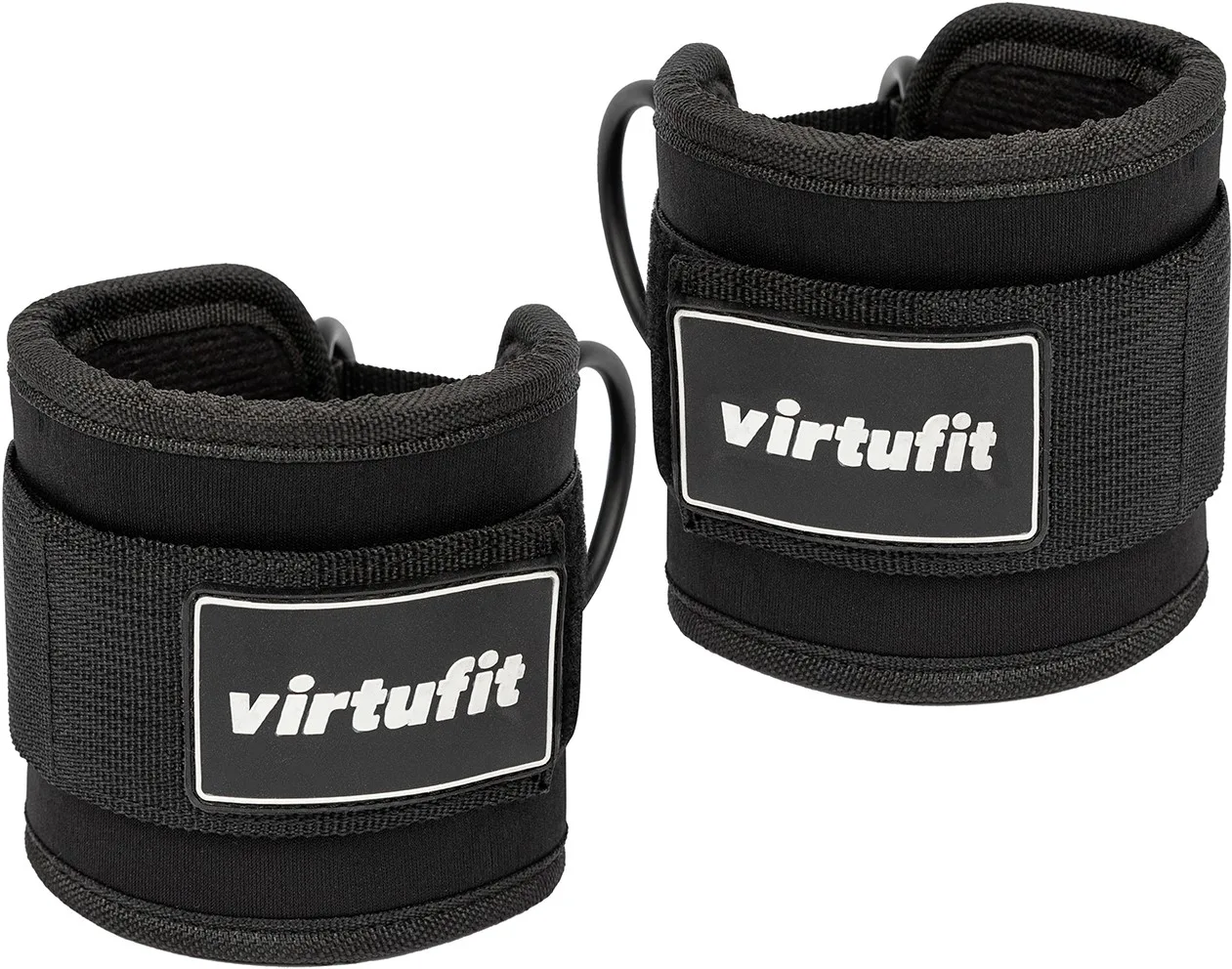 Kotníkové adaptéry VIRTUFIT Strap Set Pro je velmi praktickým cvičebním doplňkem na cvičení na posilovacích věžích i kladkách. Tento kotníkový pásek od VirtuFit je vyroben z odolného nylonu a má kovový D-kroužek, díky kterému se můžete připojit prakticky k jakékoli věži či kladce.