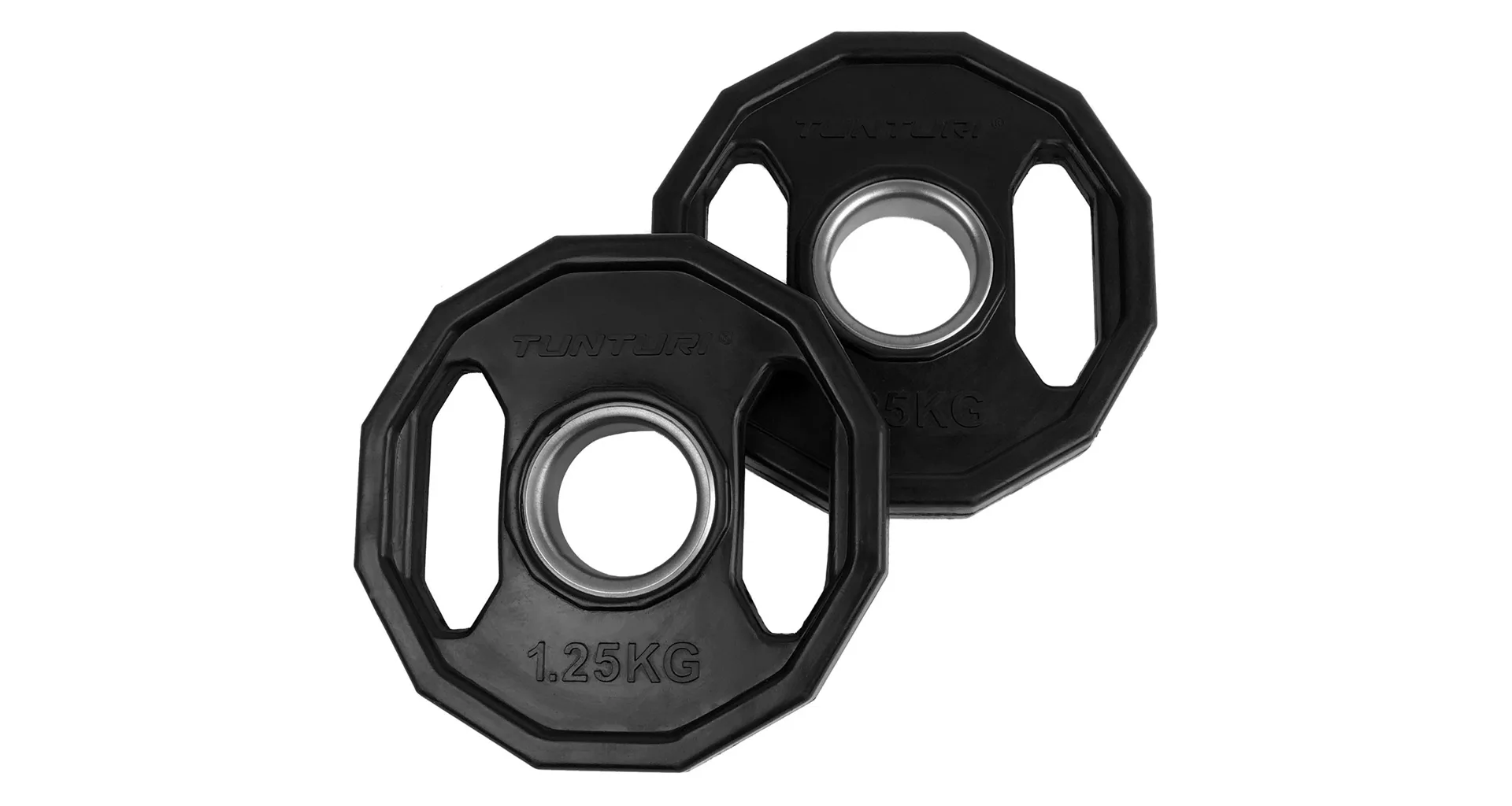 Kotouč olympijský pogumovaný hranatý TUNTURI je kvalitní litinovýkotouč s dodatečnou ochranou a hranatým provedením. Povrch kotouče je pokryt vrstvou kvalitní gumy s vysokou odolností proti nárazům a oděrkám. Disponuje dvěma úchopy po stranách a lze jej tak využít i jako činku, případně jako zátěž při shybech při použití fitness pásu s řetězem. Rovněž se díky těmto úchopům s kotoučem mnohem lépe manipuluje. Díky těmto vlastnostem jsou tyto kotouče vhodnou volbou do domácích i komerčních posiloven.