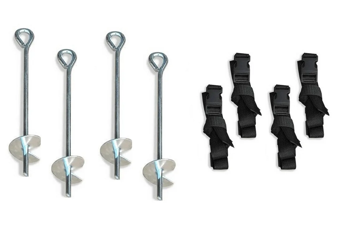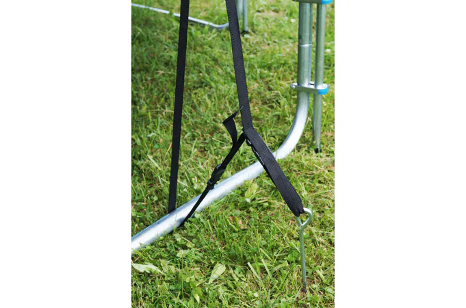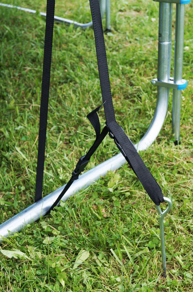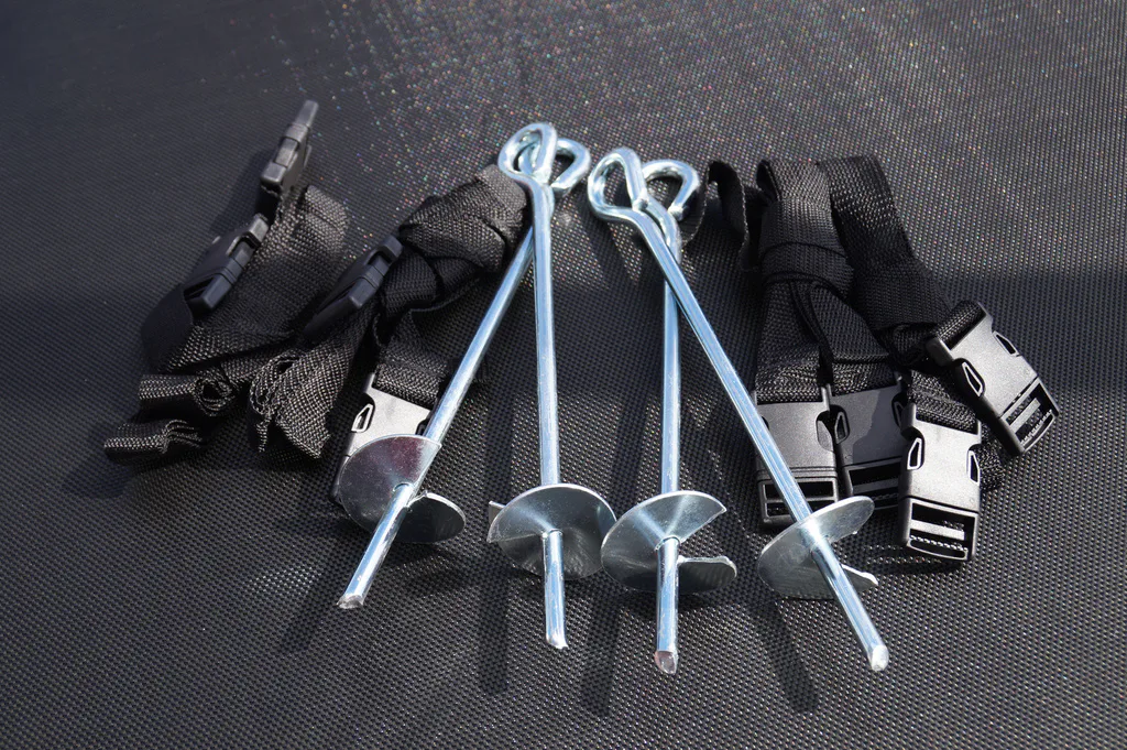 Kotvící sada s kolíky a textilními popruhy je určena pro trampolíny a jejich zajištění při nepříznivém počasí. Při větrném počasí brání poškození trampolíny. Pomocí kotvící sady je trampolína ukotvena pevně k zemi. Sada obsahuje 4 kusy kotvících kolíků.