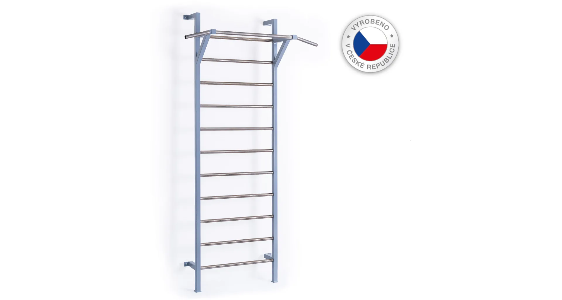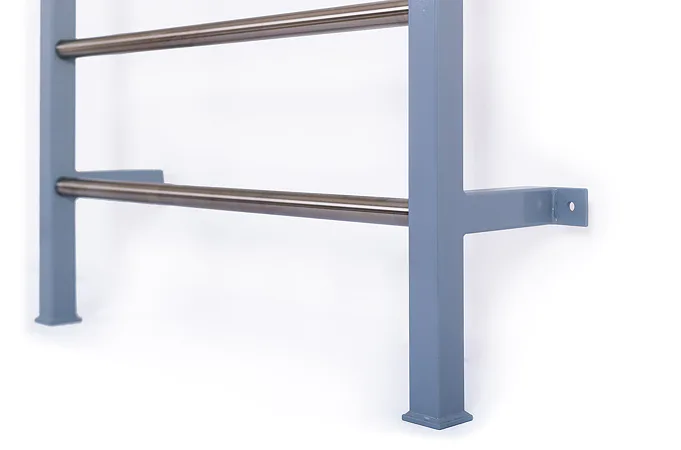 Profesionální kovové žebřiny s nerezovou hrazdou a příčkami FITHAM jsou určené pro klubové, domácí i komerční použití. Žebřina je vyrobena z kvalitních ocelových profilů v kombinaci s nerezovými příčkami a hrazdou. Hodí se všude tam, kde jsou kladeny vysoké nároky na design. Příčky ribstole i hrazda jsou z nerezu, není tedy problém s jejich odíráním při častějším používání či zavěšování adaptérů, lavic, bradel apod.. Svislé bočnice ribstole jsou lakované odolným komaxitovým vypalovaným lakem.