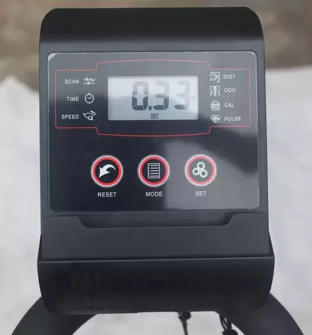 Pro monitorování tréninkových údajů je trenažér vybaven počítačem, který měří čas, vzdálenost, rychlost, spálené kalorie a tepovou frekvenci pomocí handpulse v rukojetích. Maximální nosnost zařízení je 130 kg. Díky transportním kolečkům je manipulace s trenažérem snadná, což usnadňuje jeho přesun a skladování.