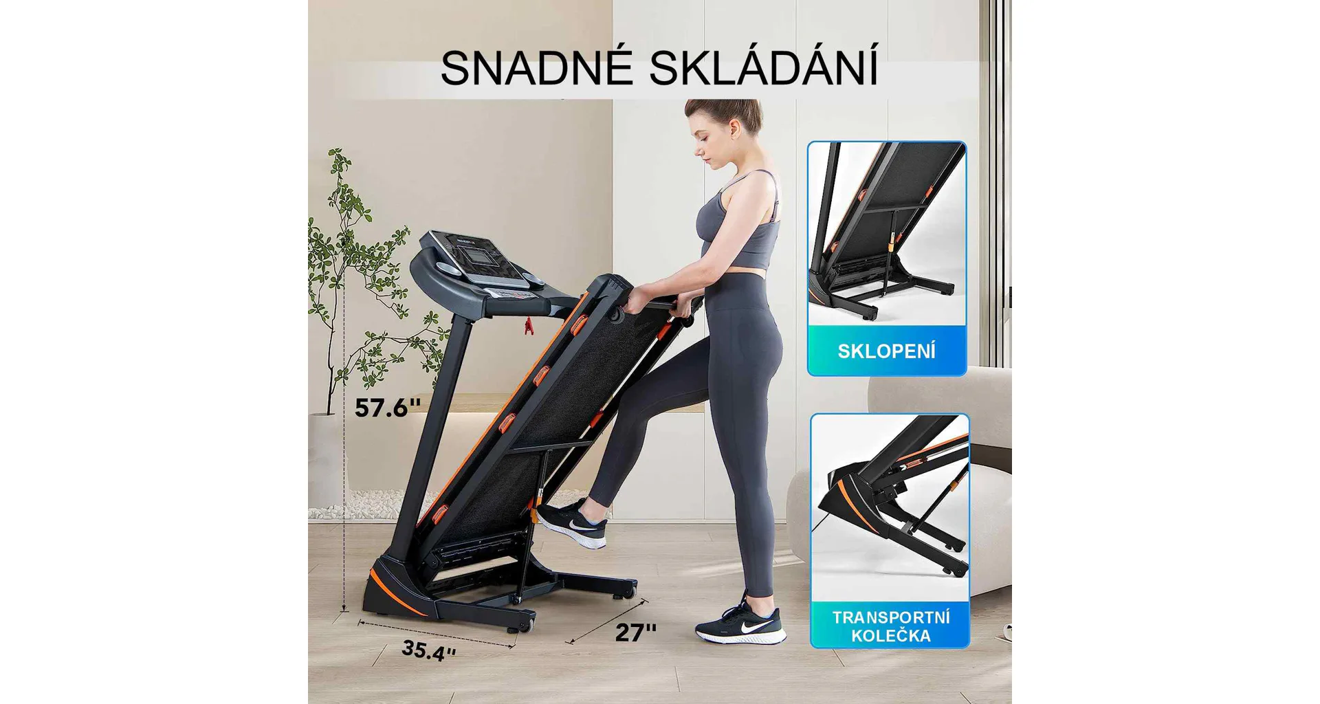 Připojit se k pásu lze přes Bluetooth, díky čemuž můžete využít tréninkové aplikace KINOMAP, ZWIFT aj... Co se týče plochy pro běh, její šířka je 42 cm a délka 124 cm (s ohledem na relativně malou běžeckou plochu je pás vhodný spíše na chůzi než běh). Využívat můžete až 12 programů. Je dobré zohlednit to, že jeho celkové rozměry jsou 162 x 68 x 127 cm. Hodí se tak i do malých prostorů, jako jsou byty v panelovém domě apod...