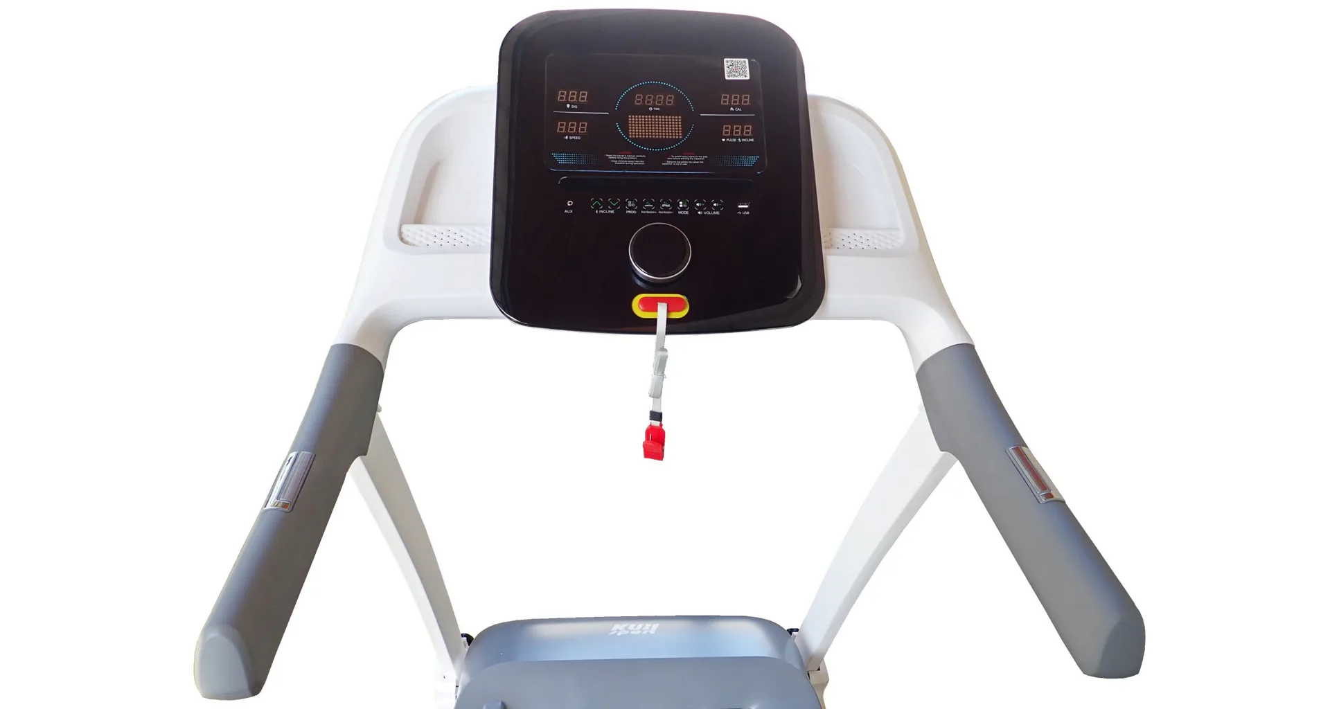 Přehledný 5" LCD displej zobrazuje důležité informace jako čas, spálené kalorie, rychlost, vzdálenost, tepovou frekvenci, úhel náklonu apod... Zároveň je možné pás připojit k oblíbené běžecké aplikaci Kinomap, Zwift nebo FitShow. (aplikace jsou ke stažení na Google Play a App Store).