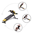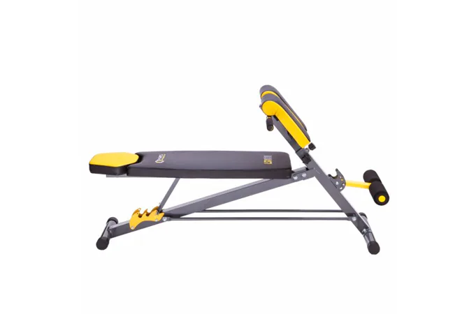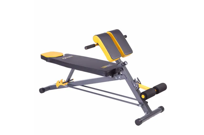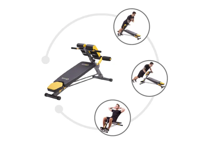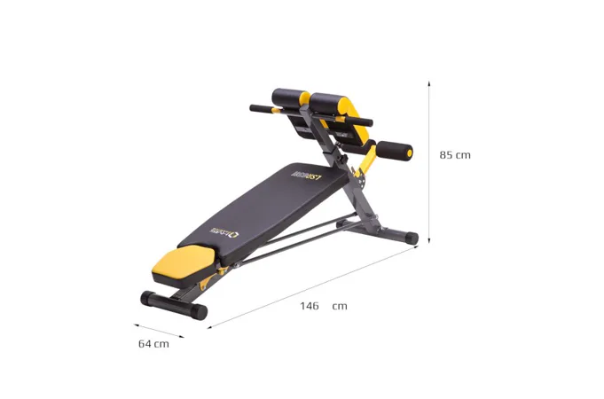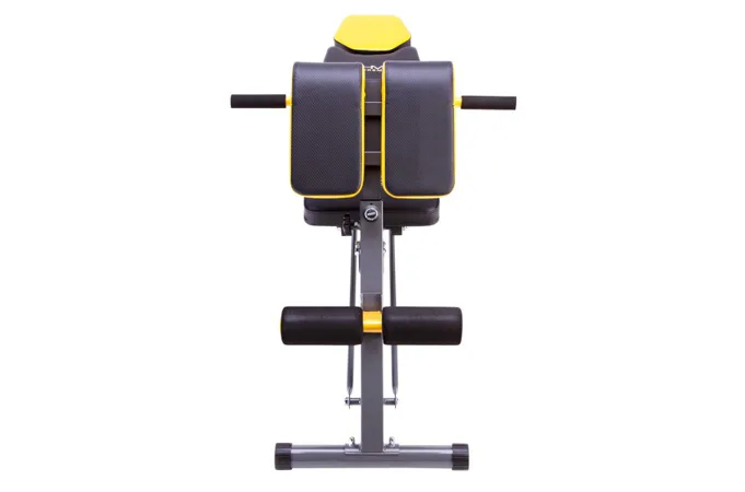 Opěry jsou vyvedeny z hrubé desky opatřené vysokou vrstvou pěny pro maximální pohodlí během tréninku. Polstrování je vyrobeno z umělé kůže s karbonovým vzhledem, je odolné vůči potu a také zamezuje "klouzání" během tréninku. Zarážka nohou s pěnovými válci je nastavitelná do 4 poloh. Madla pod modlitebníkem slouží k tréninku kliků.