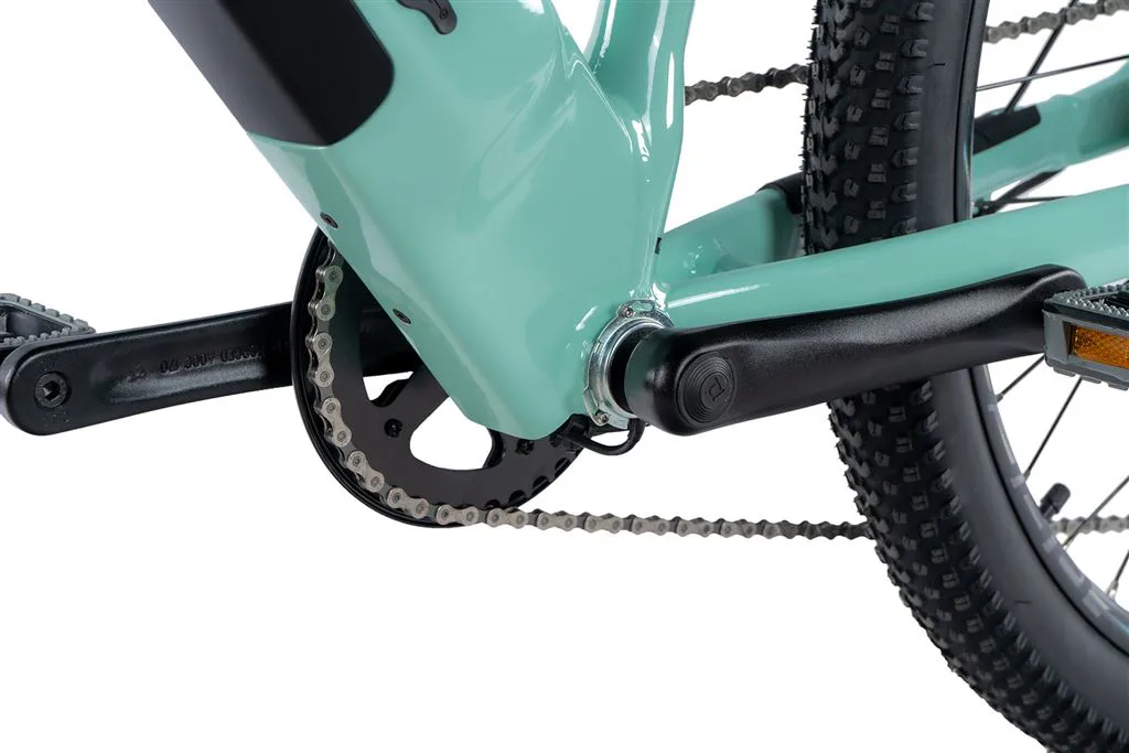 Komfort e-biku zajišťuje bohatá základní výbava s odpruženou vidlicí, kotoučovými brzdami a stabilními 29“ zapletenými koly.