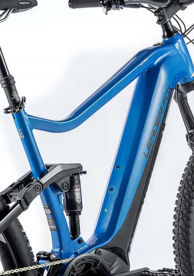 Leader Fox AYRA je horské celoodpružené elektrokolo vhodné pro pány. AYRA je e-bike s plně integrovanou baterií v rámu kola, sportovním designem, odpruženou přední vidlicí a zadním tlumičem Manitou. Kapacita baterie je 20 Ah (720 Wh).