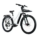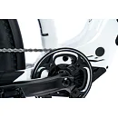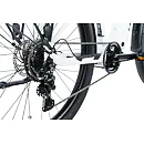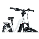 Komfort e-biku zajišťuje bohatá základní výbava s odpruženou vidlicí, kotoučovými brzdami a stabilními 28“ zapletenými koly.