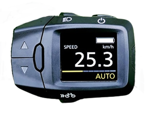 Systém se ovládá pomocí LCD displeje a tlačítkového ovladače umístěného na řídítkách.