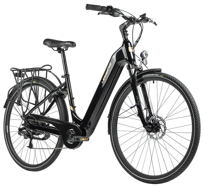 Leader Fox INDUKTORA je městské elektrokolo s elegantním designem, odpruženou přední vidlicí, lehkým rámem a nízkým nástupem. Kapacita baterie je 15 Ah (540 Wh).