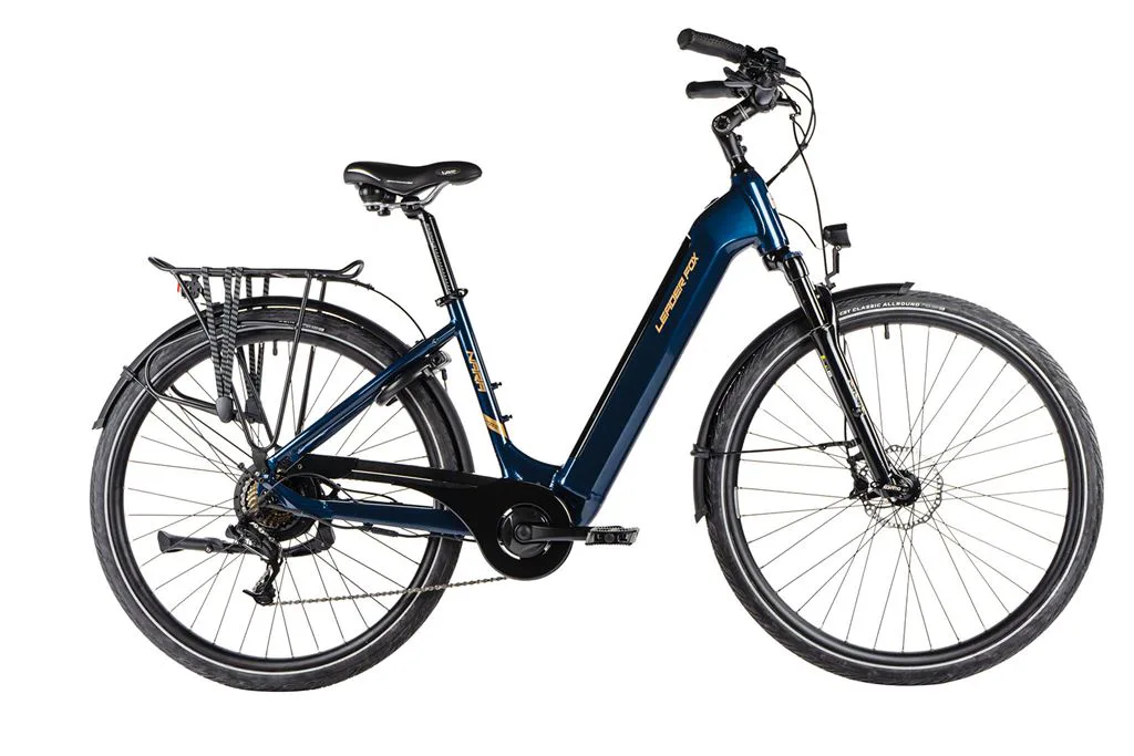 Leader Fox NARA je městské elektrokolo s elegantním designem, odpruženou přední vidlicí, 28“ koly a sníženým nástupem pro pohodlnou jízdu. Kapacita baterie je 15 Ah (540 Wh).