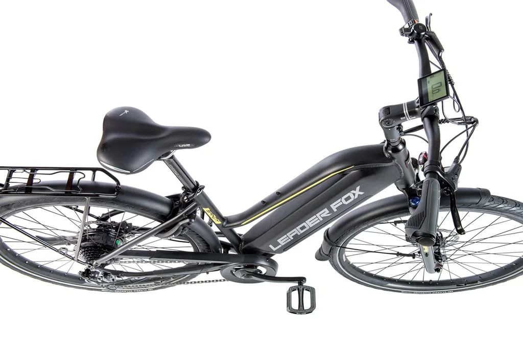 Leader Fox SANDY je trekové elektrokolo vhodné pro dámy. SANDY je e-bike s plně integrovanou baterií v rámu kola, sportovním designem, odpruženou přední vidlicí, pohodlným sedlem a nosičem. Kapacita baterie je 15 Ah (540 Wh).