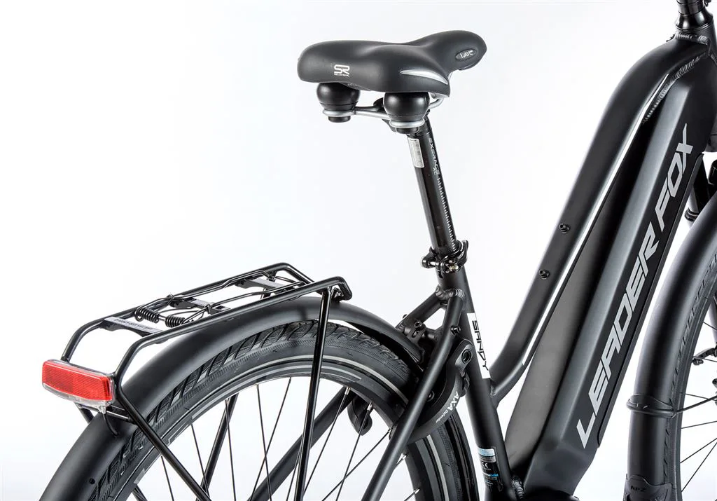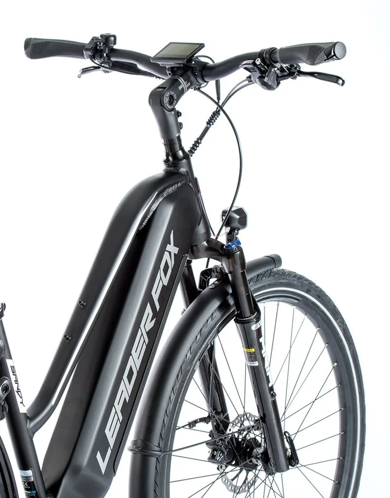 Leader Fox SANDY je trekové elektrokolo vhodné pro dámy. SANDY je e-bike s plně integrovanou baterií v rámu kola, sportovním designem, odpruženou přední vidlicí, pohodlným sedlem a nosičem. Kapacita baterie je 15 Ah (540 Wh).
